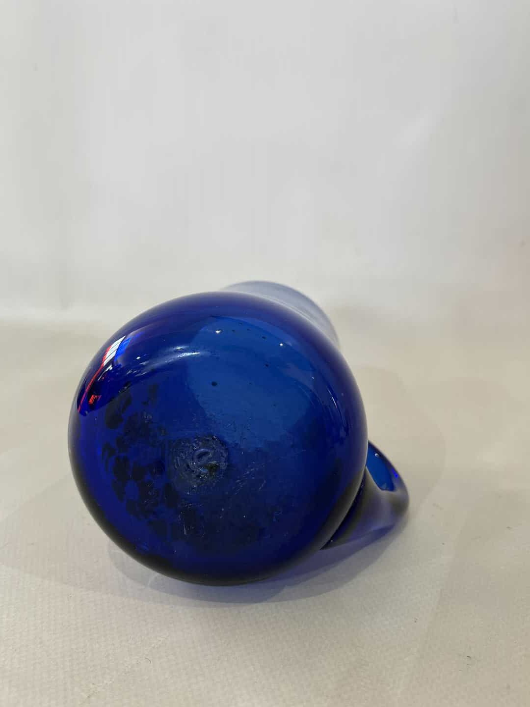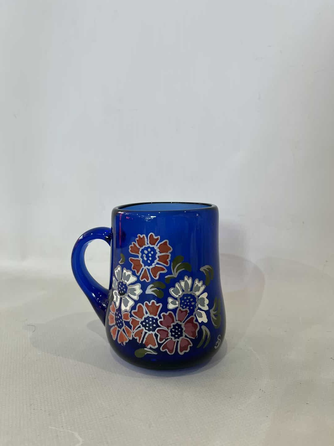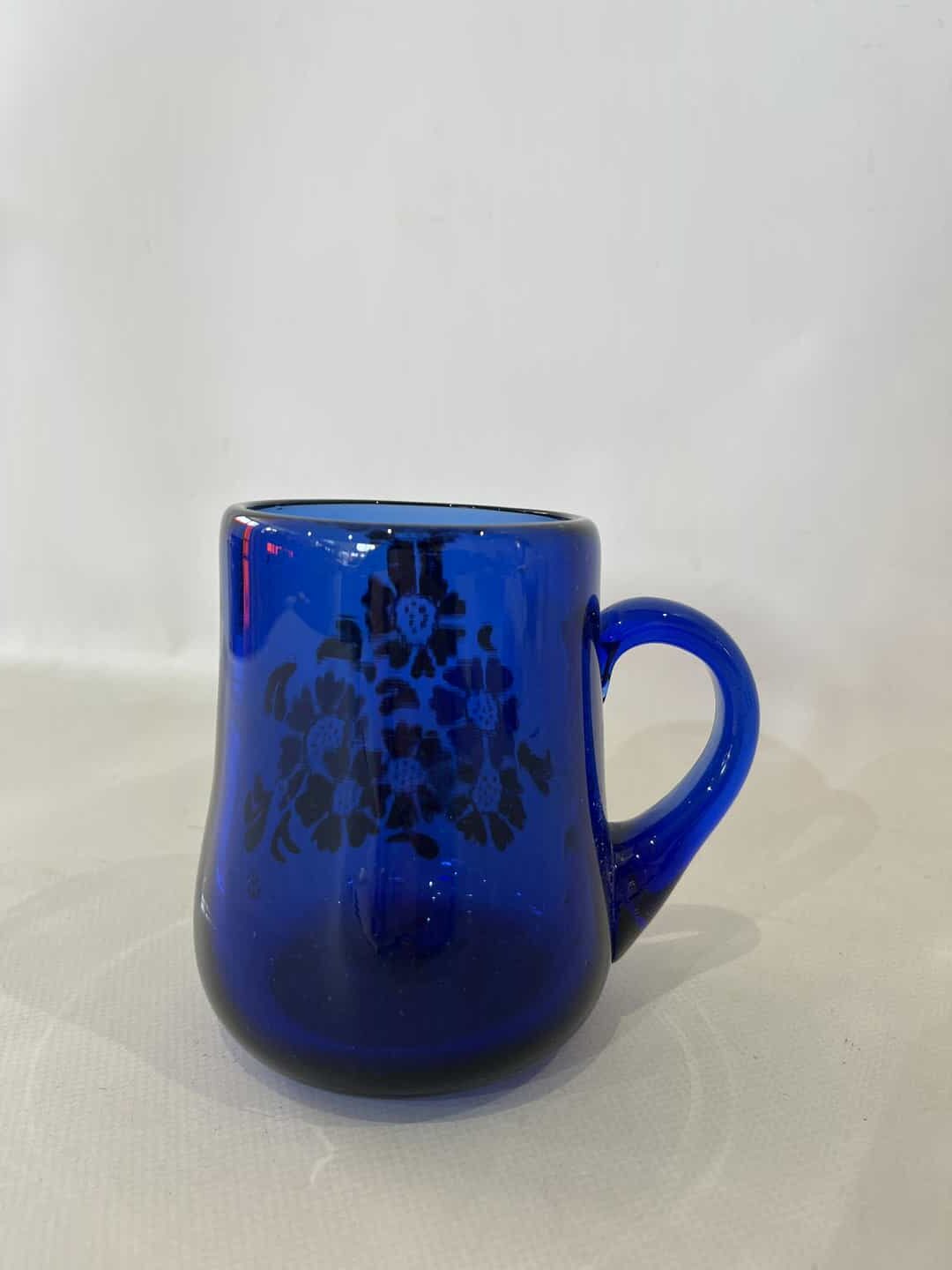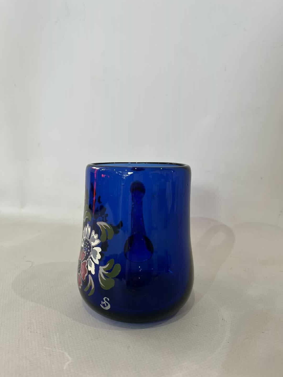 Vintage γυάλινη κούπα σε μπλε χρώμα, ζωγραφισμένη στο χέρι 12×13