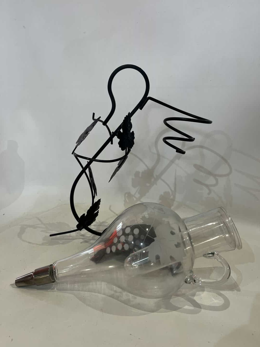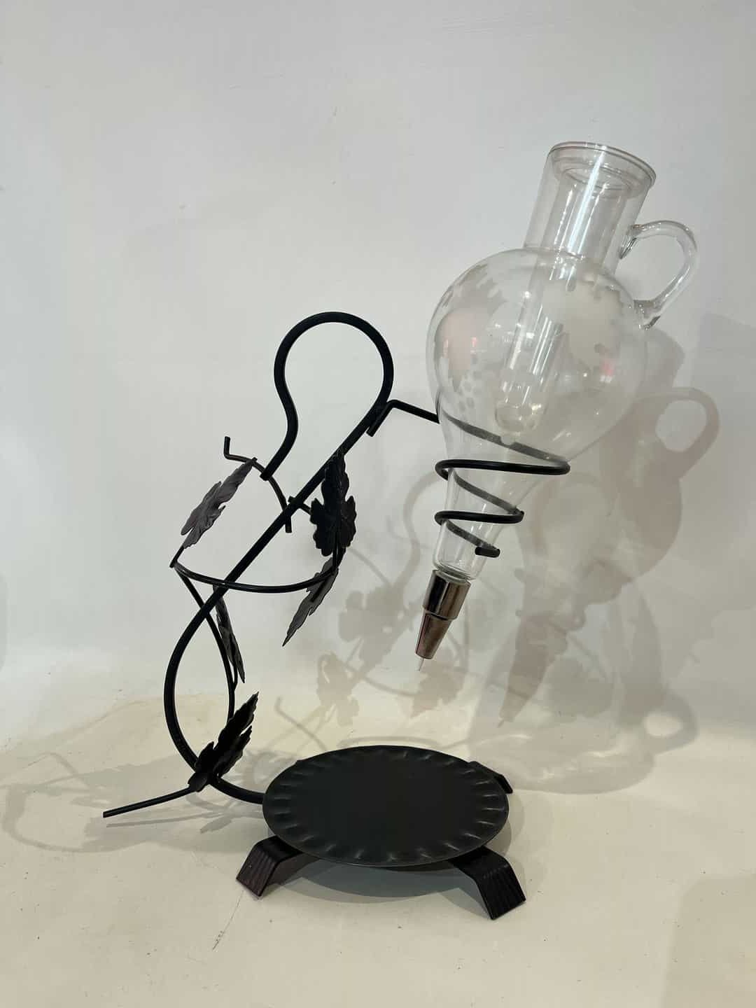 Vintage γυάλινος αεριστής κρασιού σε μεταλλική βάση 42x26x16
