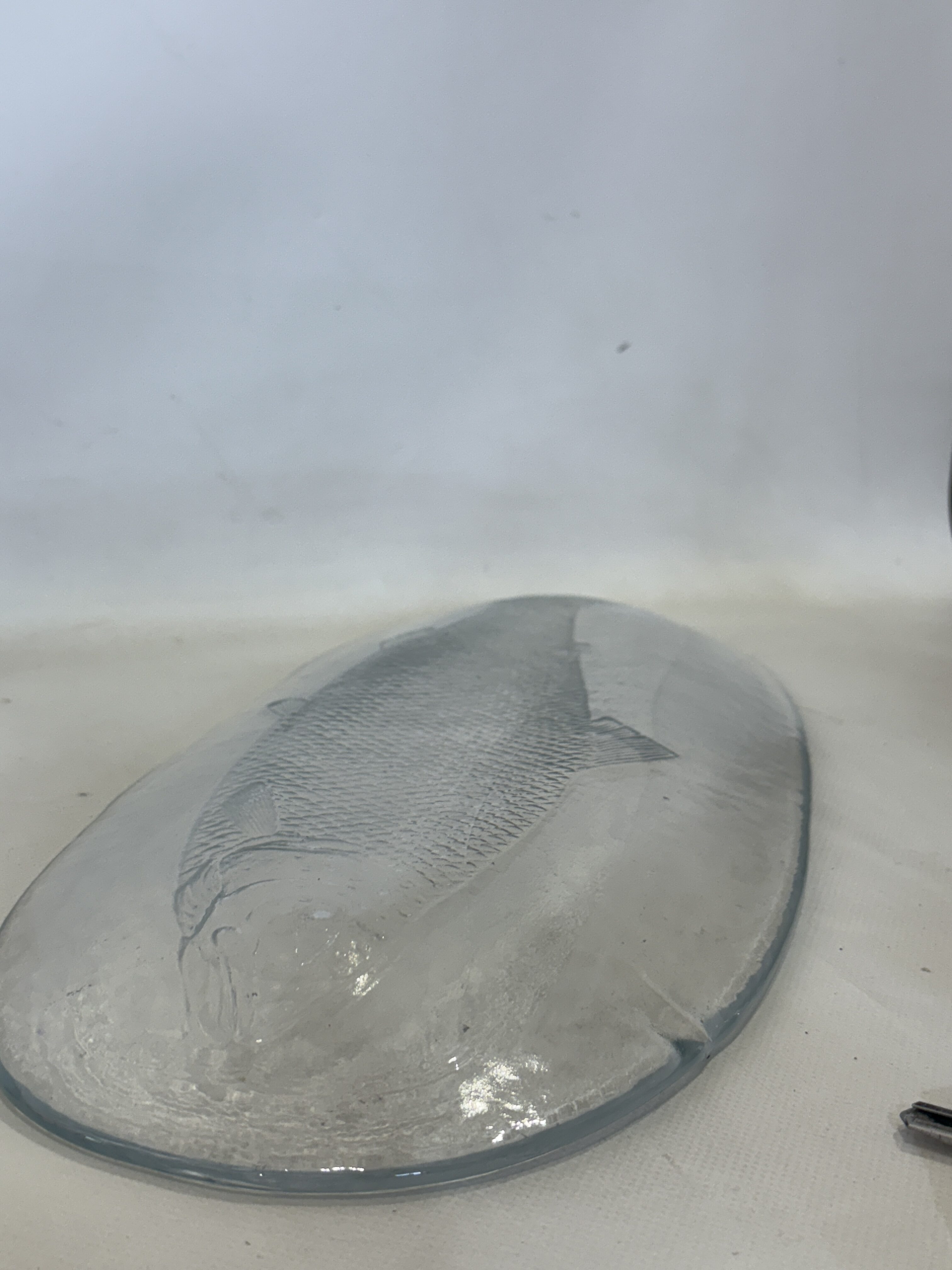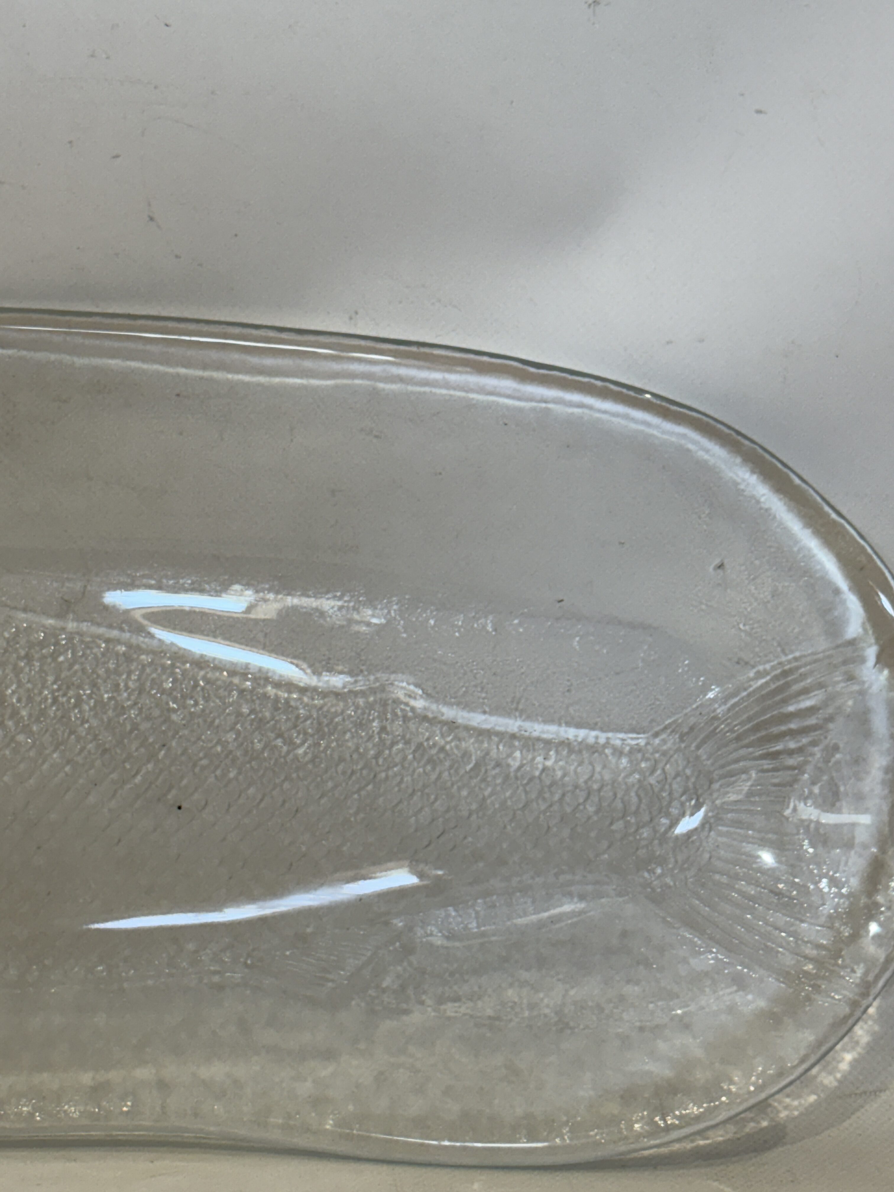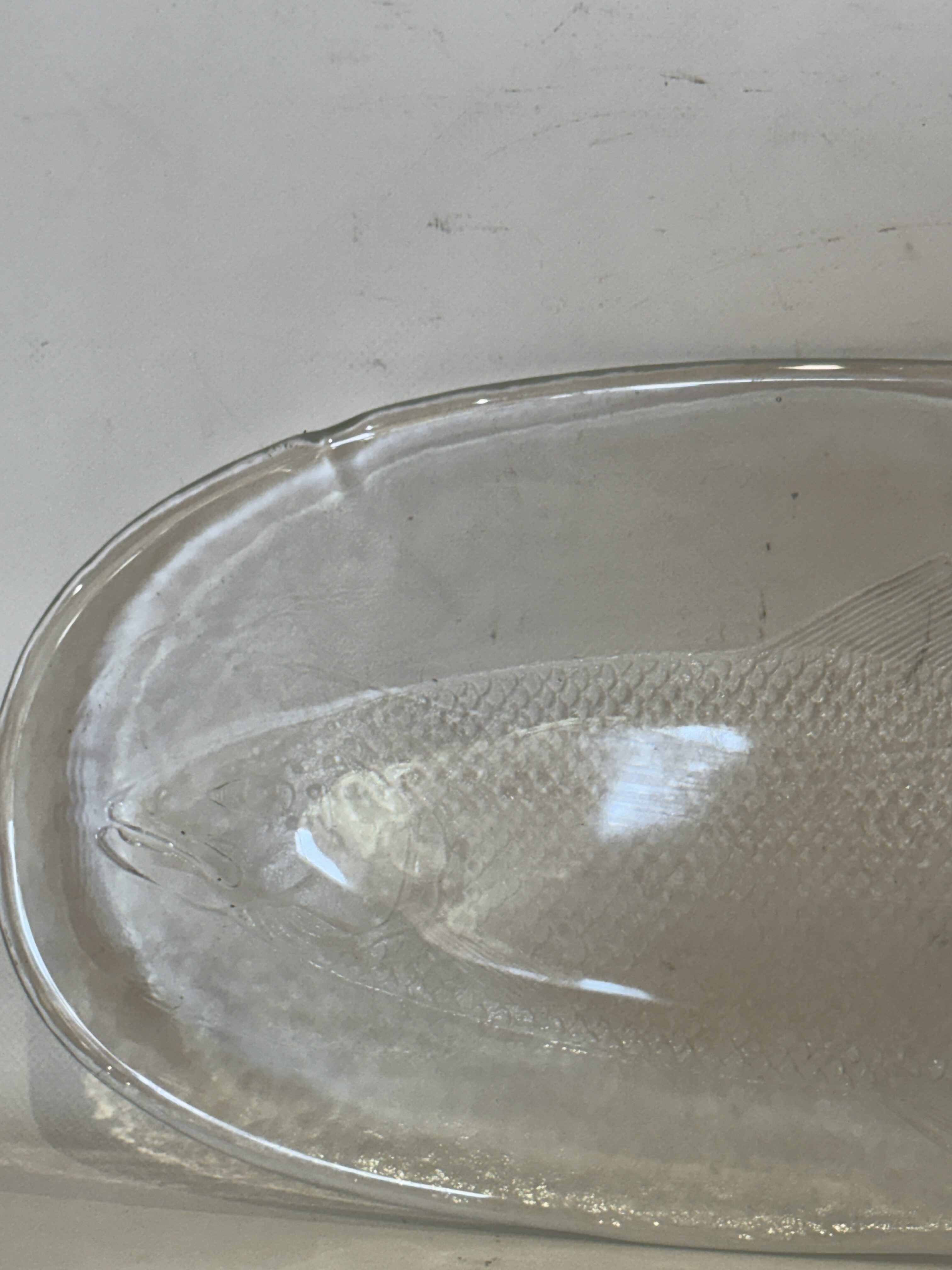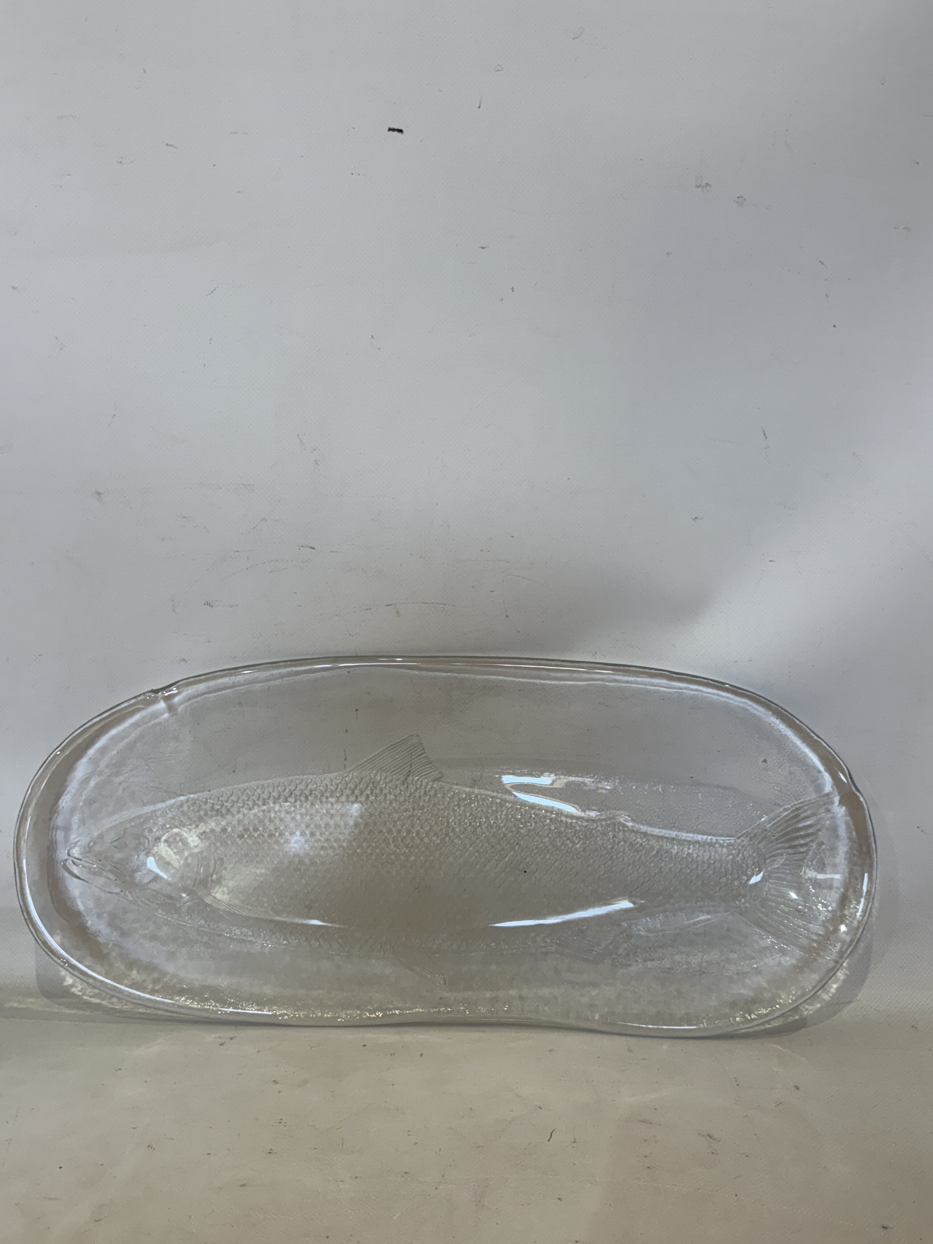 Vintage γυάλινος δίσκος σερβιρίσματος με ανάγλυφο σχέδιο από ψάρι 49×21   Κωδικός προϊόντος:#s11024