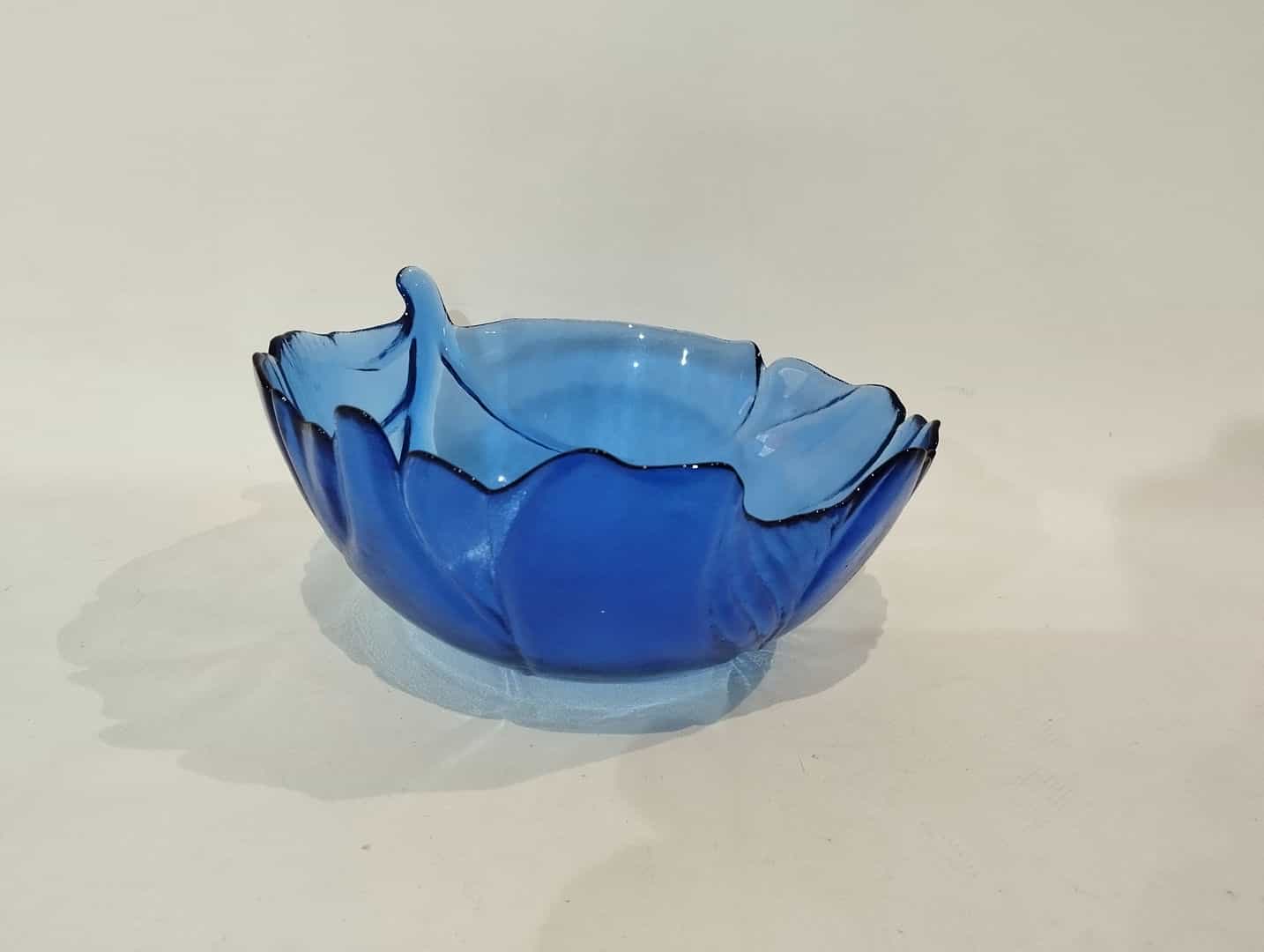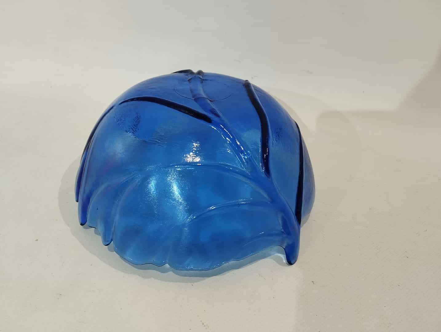 Vintage γυάλινο μπλε μπολ σε σχήμα φύλλου 9×21