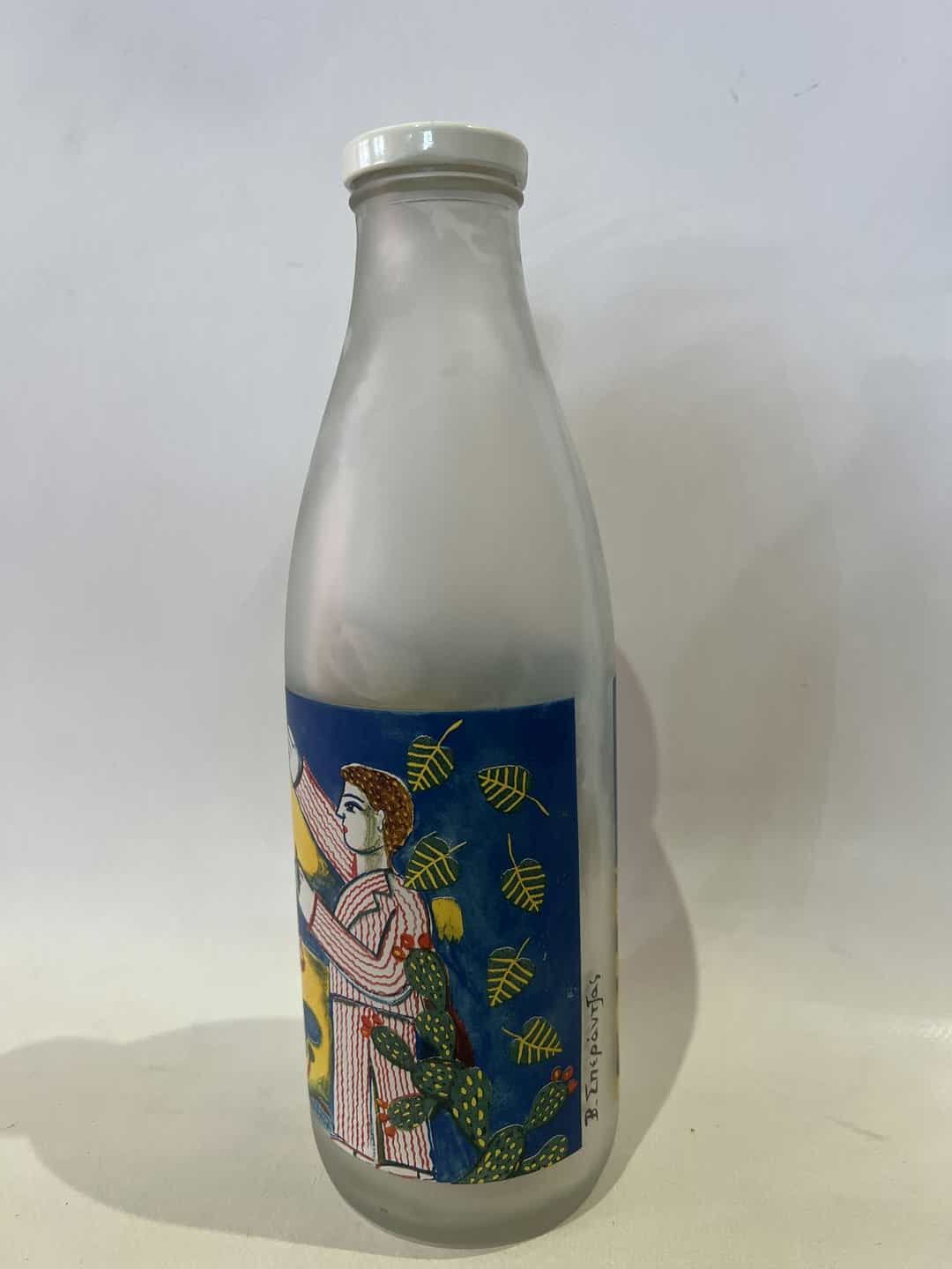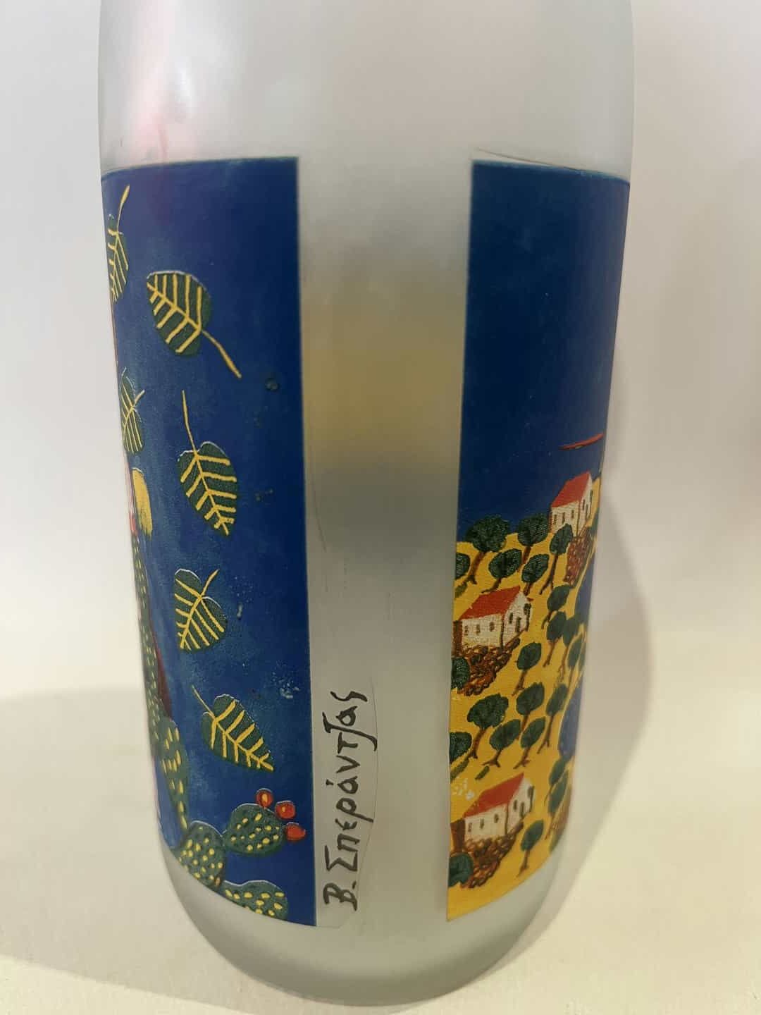 Vintage γυάλινο μπουκάλι με ζωγραφιά Β.Σπεράντζος 26×8 Κωδικός προϊόντος: #s16136