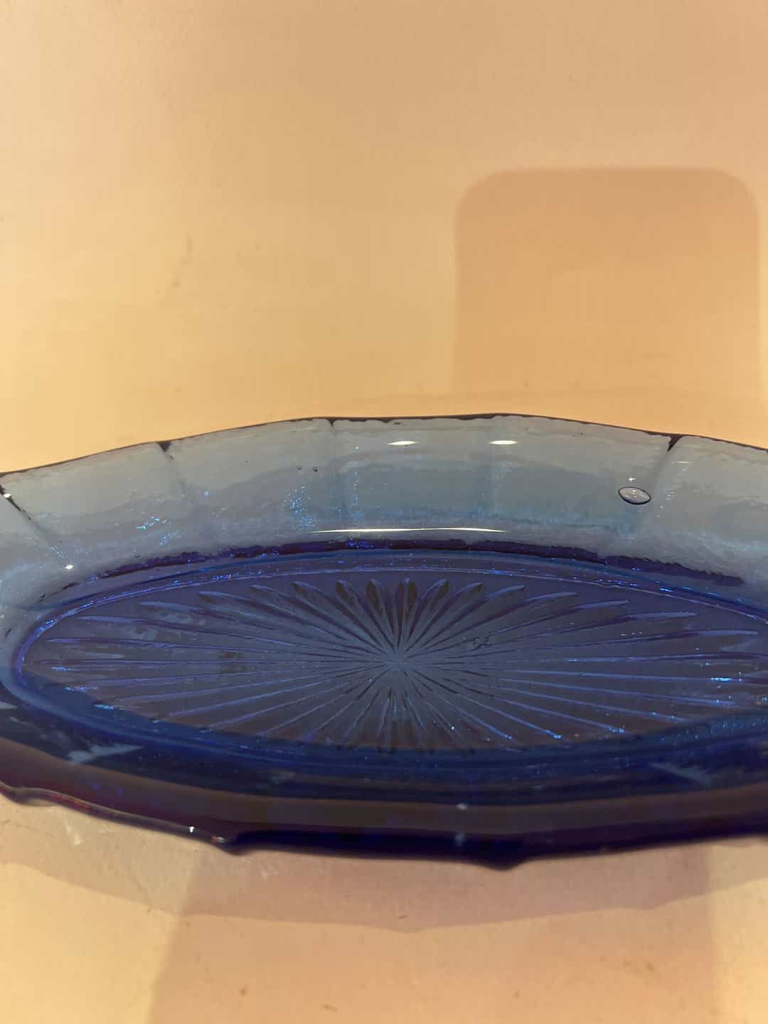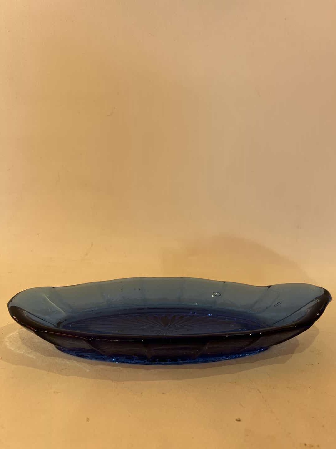 Vintage γυάλινο πιατάκι οβάλ σε μπλε απόχρωση 3×22,5×8,5 Κωδικός προϊόντος: #s14954