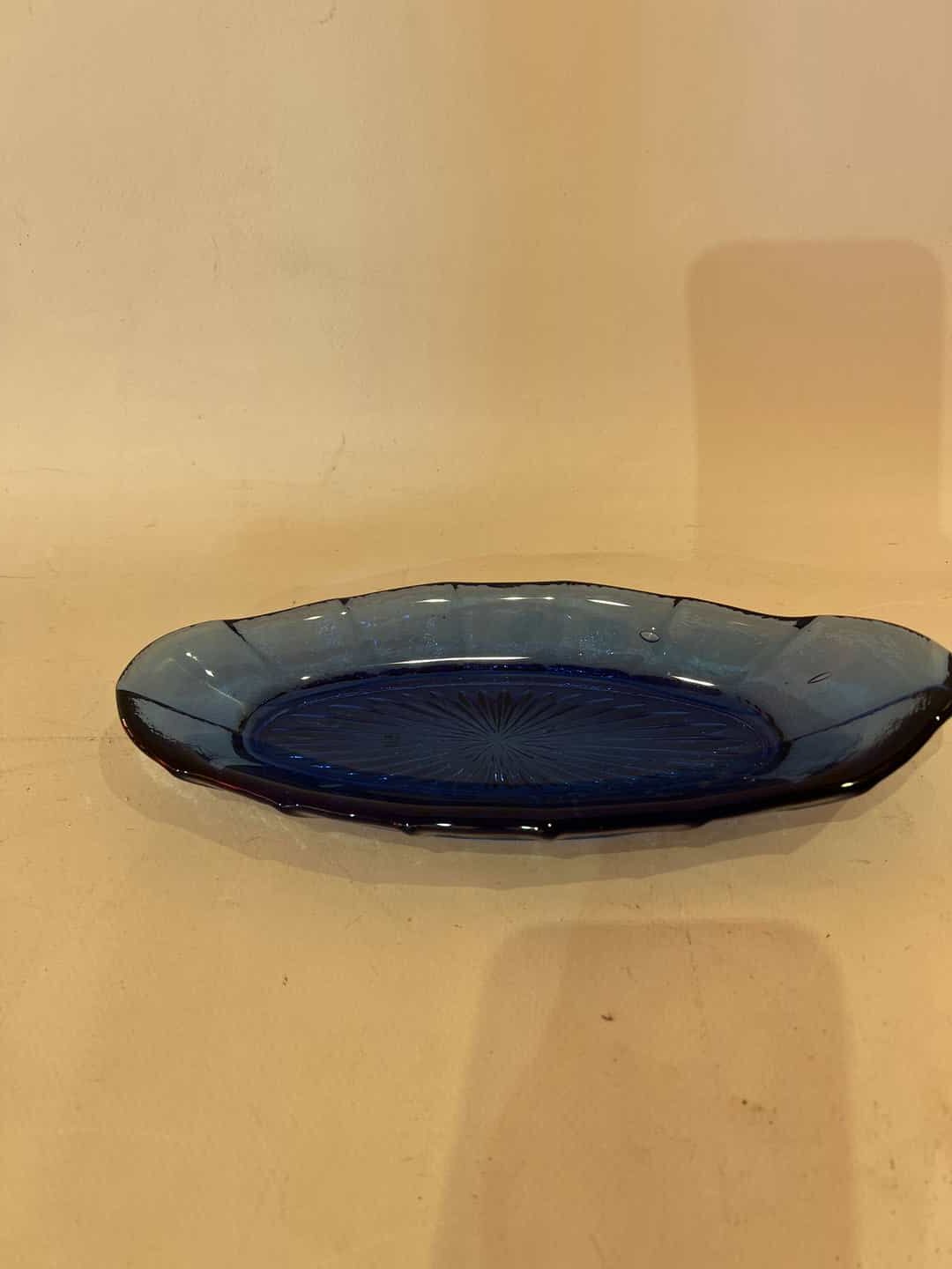 Vintage γυάλινο πιατάκι οβάλ σε μπλε απόχρωση 3×22,5×8,5