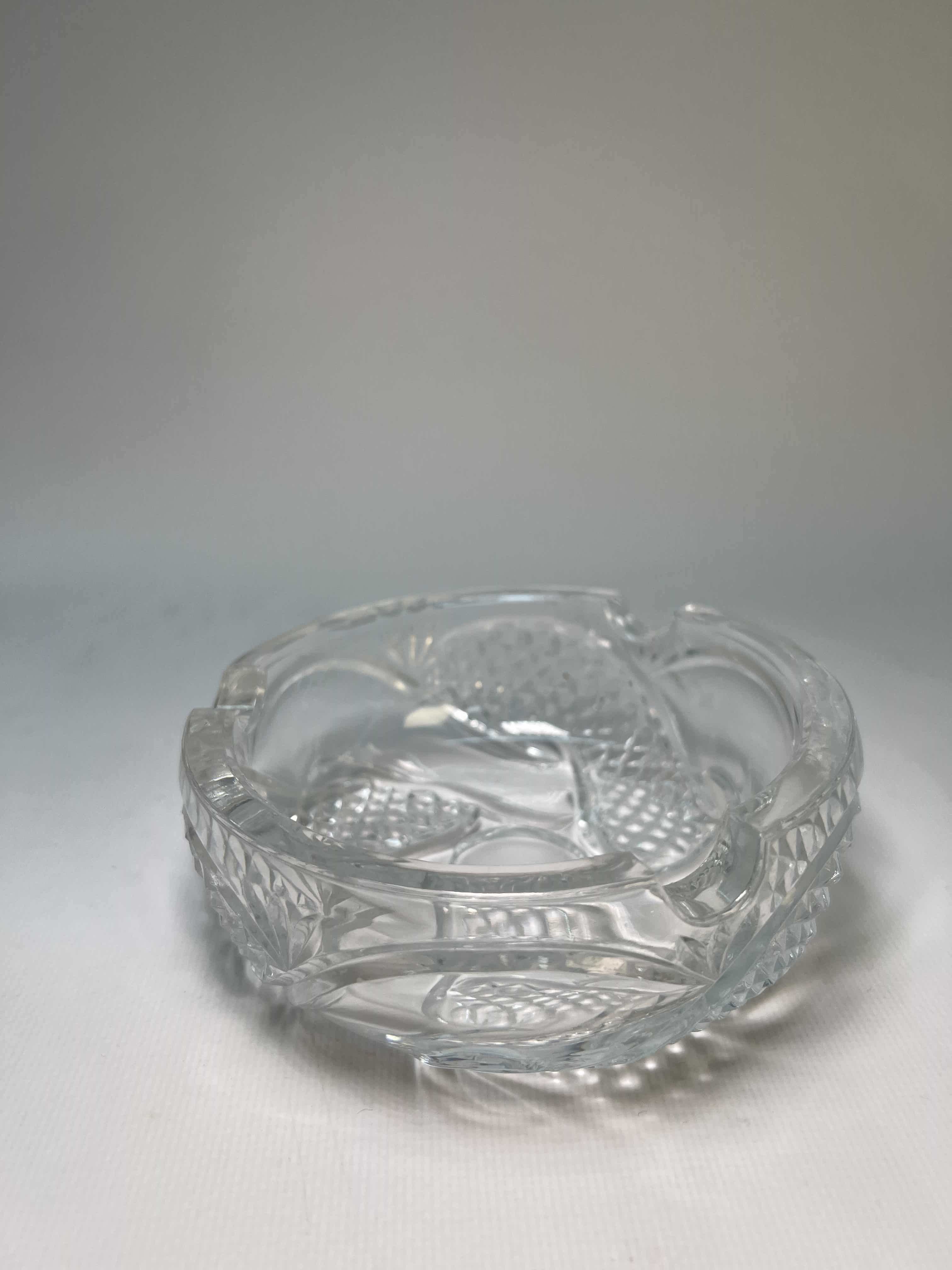 Vintage γυάλινο σταχτοδοχείο με σκάλισμα στο εξωτερικό 5x13cm
