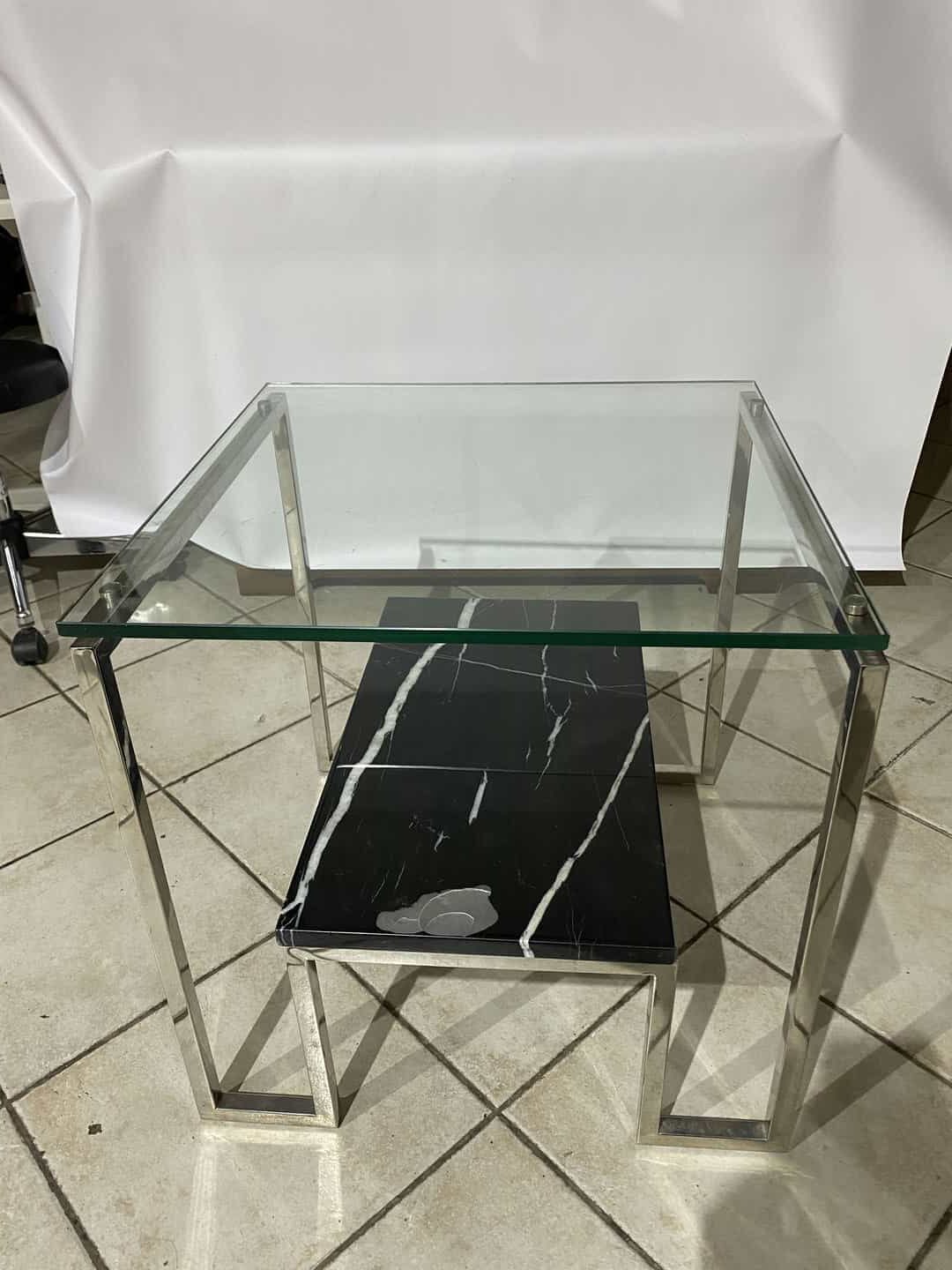 Vintage γυάλινο τραπέζακι σαλονιού με μάρμαρο 55x55x55  Κωδικός προϊόντος: #s12985