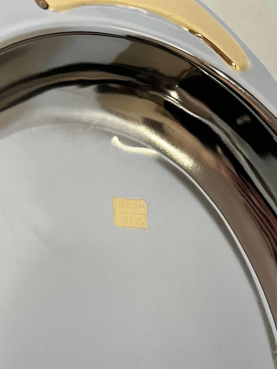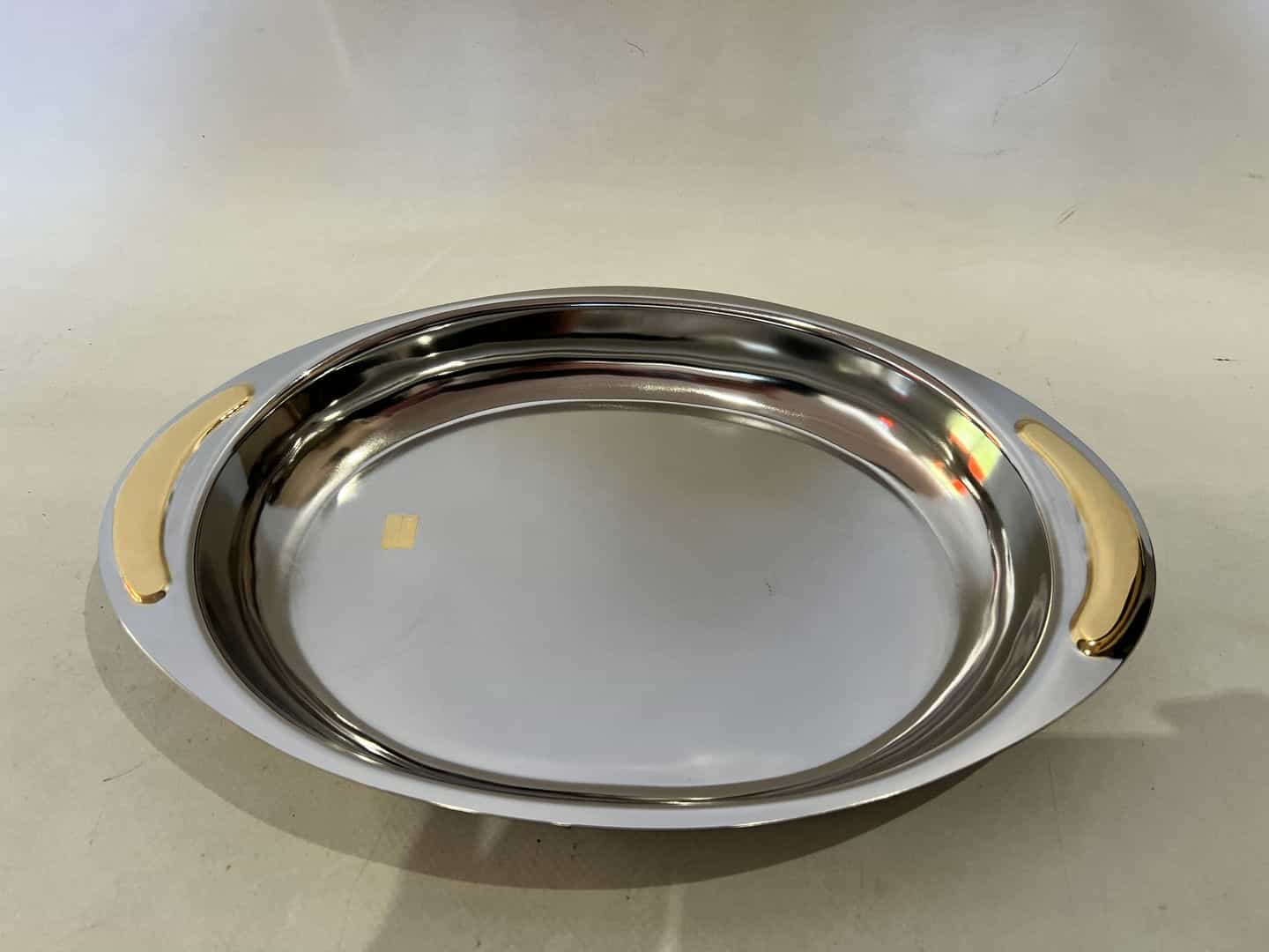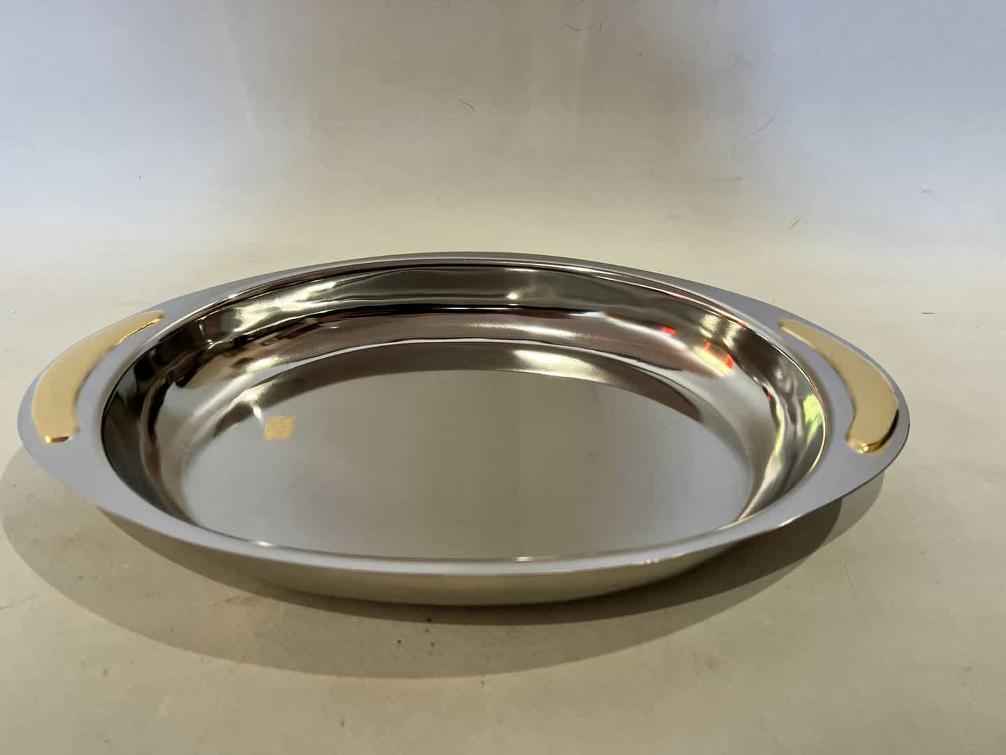 Vintage δίσκος σερβιρίσματος από ανοξείδωτο ατσάλι με 24Κ χρυσές λεπτομέρειες 3,5×29,5×18,5