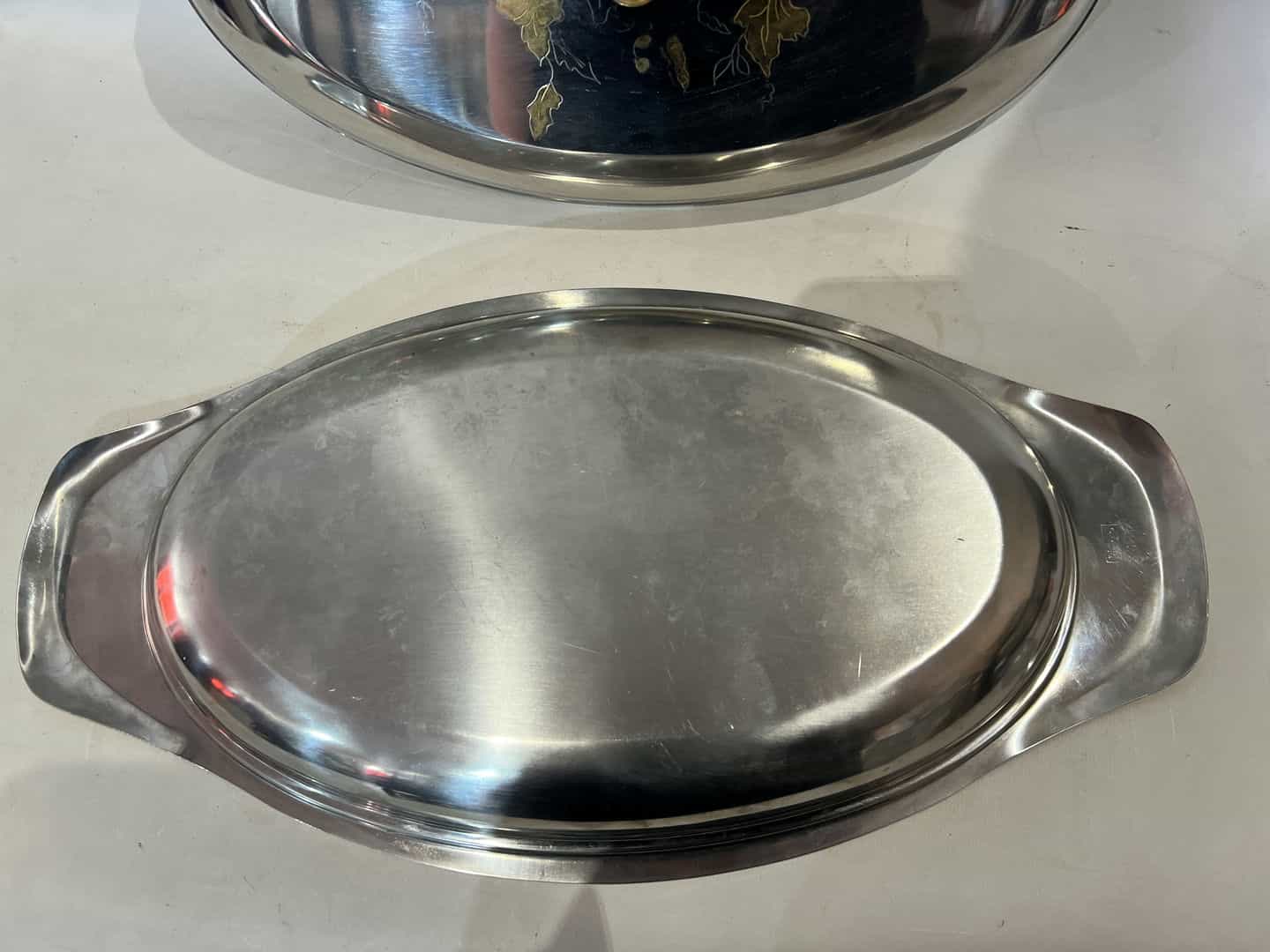 Vintage δίσκος σερβιρίσματος με καπάκι απο ανοξείδωτο ατσάλι ROSTFREI 24K 10x46x24 Κωδικός προϊόντος: #s16674