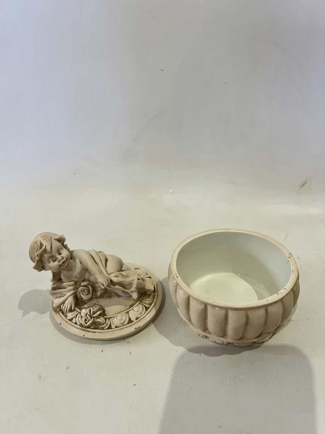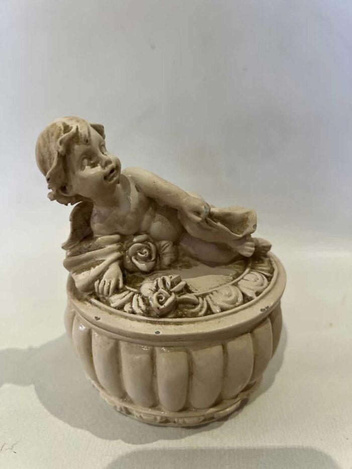 Vintage διακοσμητική κοσμηματοθήκη με αγγελάκι στο καπάκι 10,5x8x6,5 Υπάρχει φθορά Κωδικός προϊόντος: #s16180
