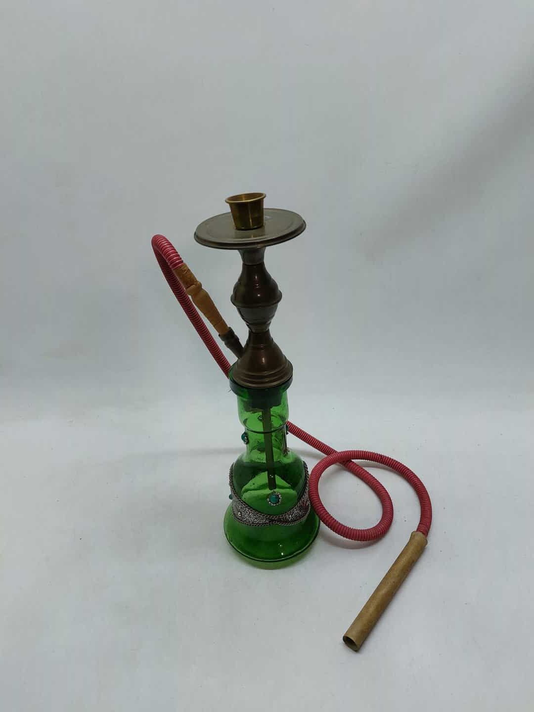 Vintage διακοσμητικός ναργιλές με πράσινο γυαλί 40×11,5cm