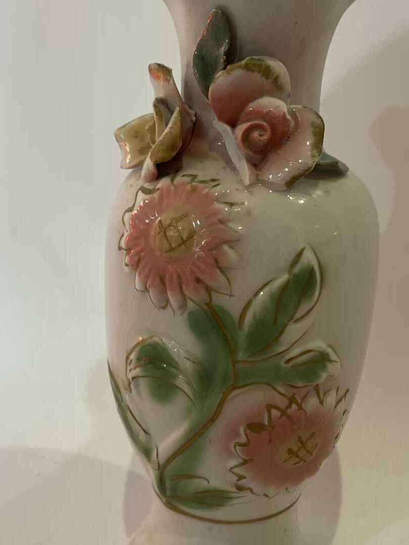 Vintage διακοσμητικό βάζο με ανάγλυφα λουλούδια 20×16 με σπάσιμο