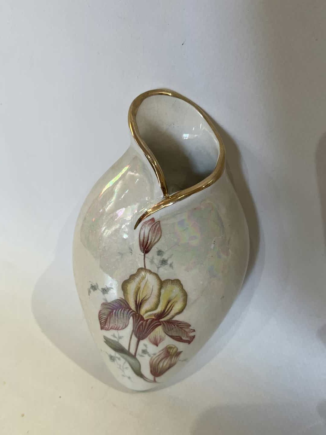 Vintage διακοσμητικό βάζο τοίχου με ιριδίζον τελείωμα και μοτίβο λουλουδιών 14x8x2,5
