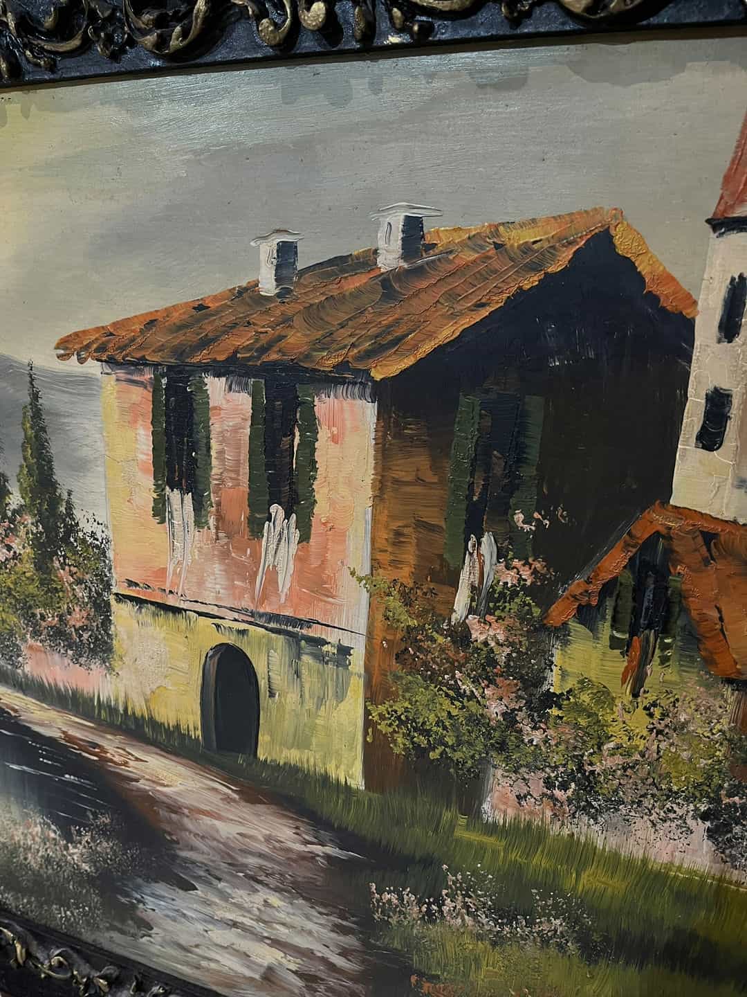 Vintage ενυπόγραφος πίνακας ζωγραφικής με σκαλιστή κορνίζα 80×131