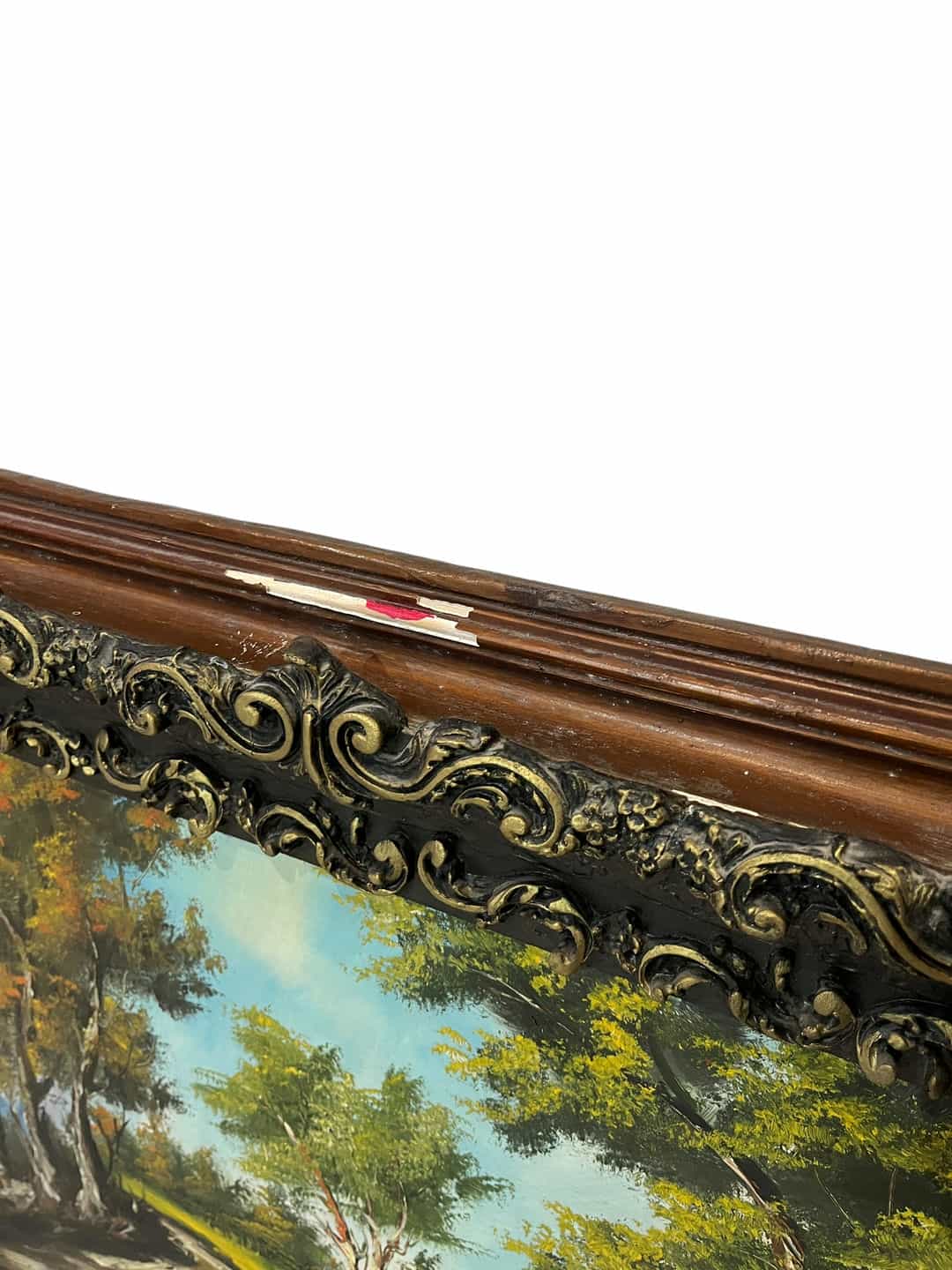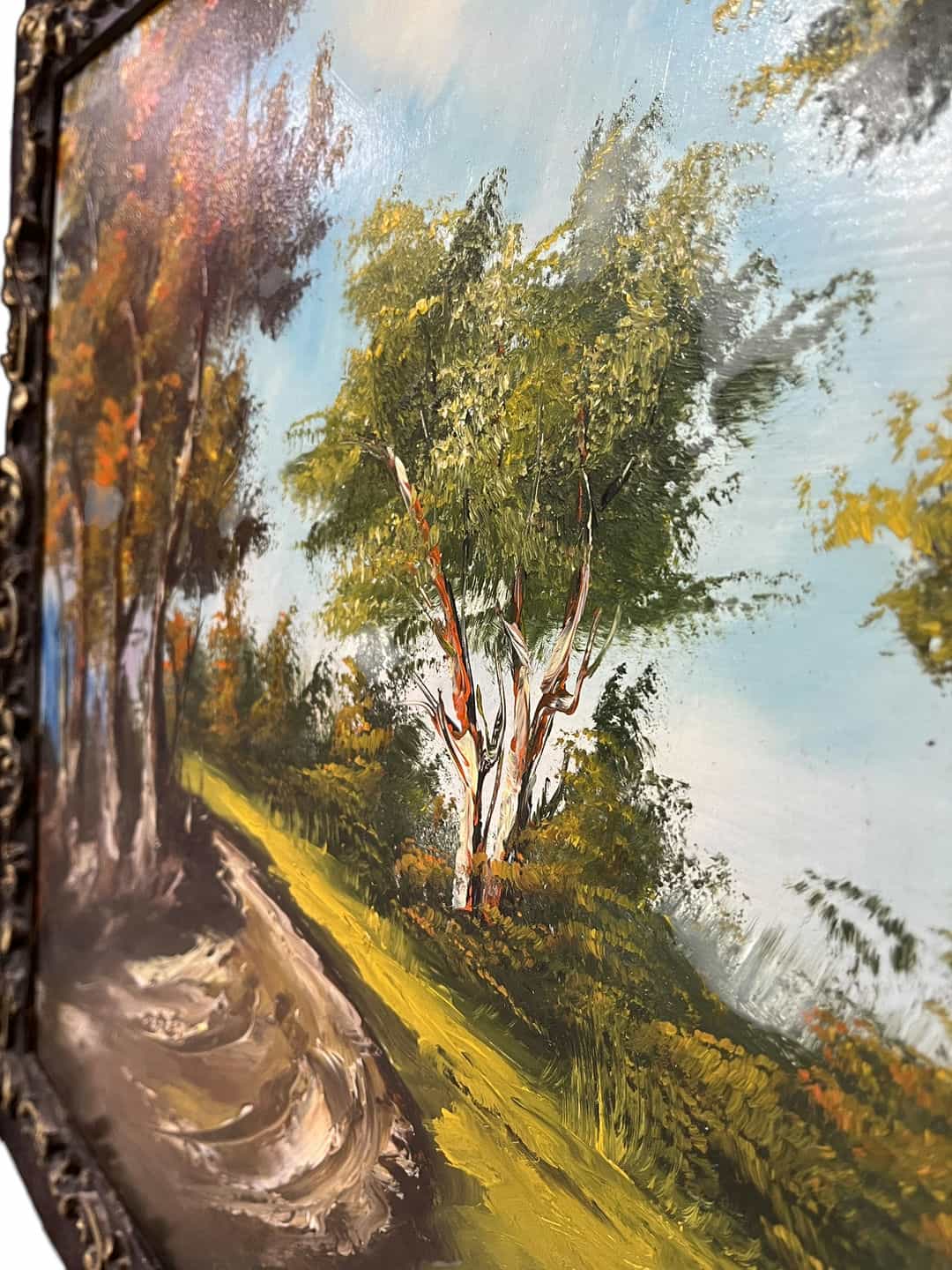 Vintage ενυπόγραφος πίνακας ζωγραφικής με σκαλιστή κορνίζα 80×130 . Υπάρχει φθορά στην κορνίζα Κωδικός προϊόντος: #s8507