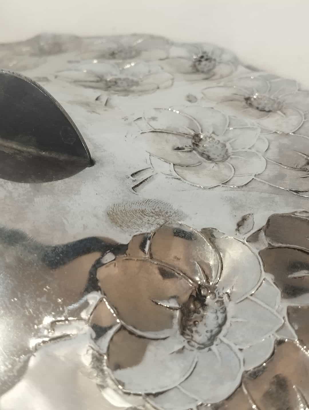 Vintage επάργυρο πιάτο ROSTRFREI με ανάγλυφα λουλούδια 4×28,5