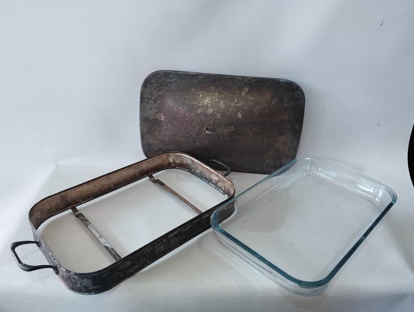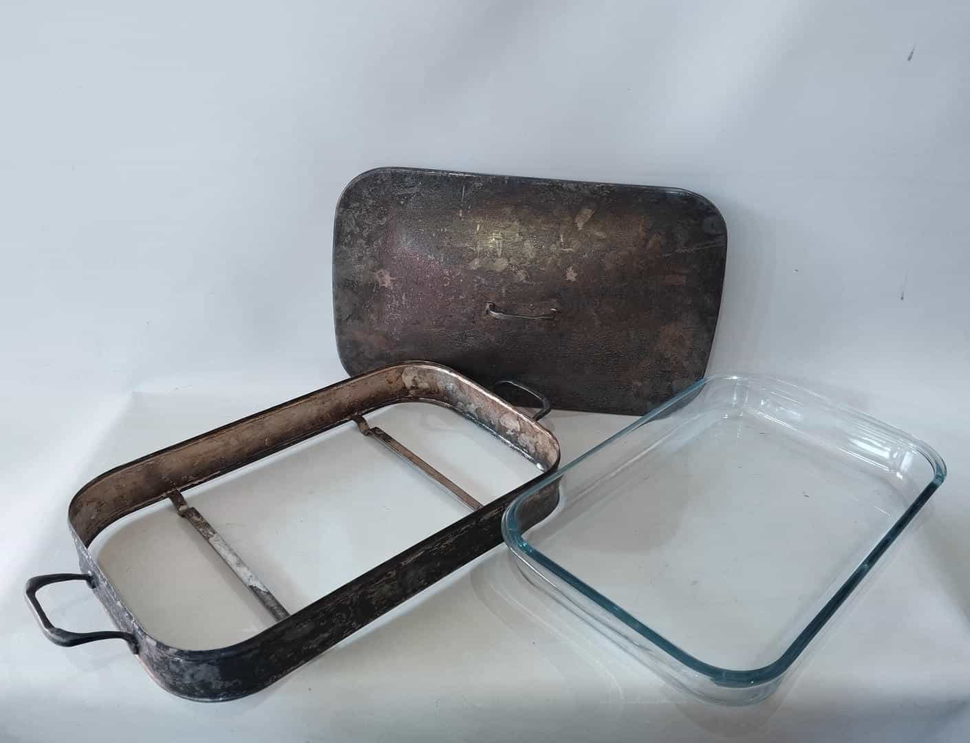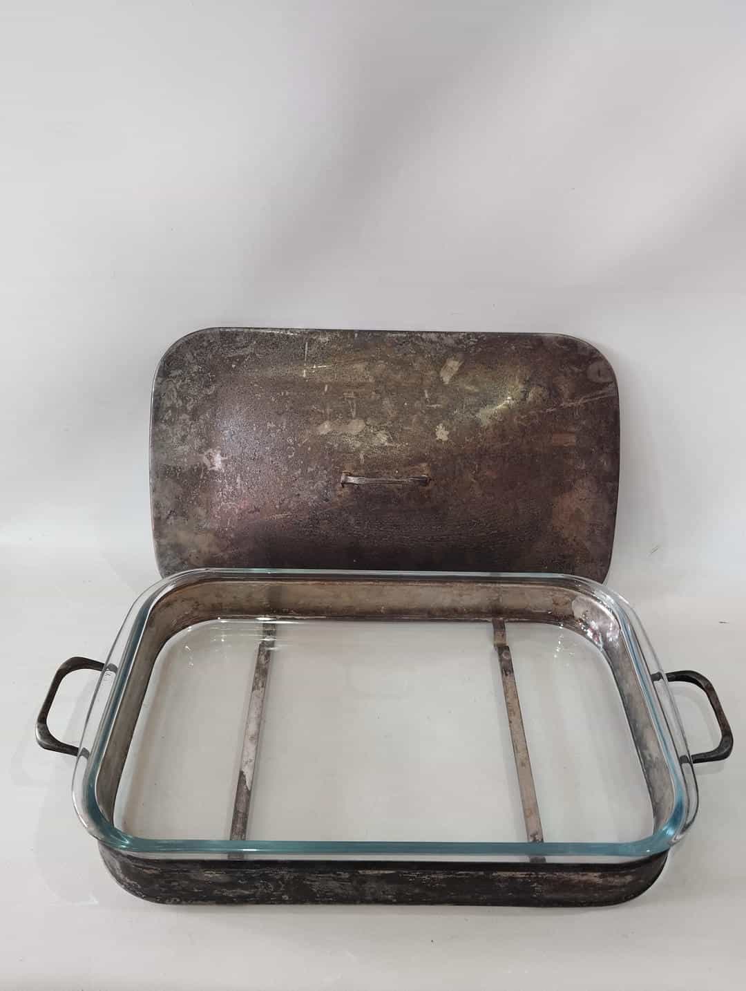 Vintage επάργυρο σκεύος σερβιρίσματος με γυάλινο σκεύος PYREX 14×48,5