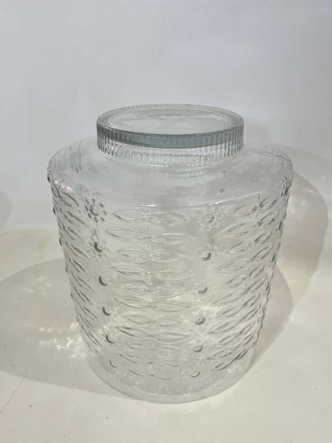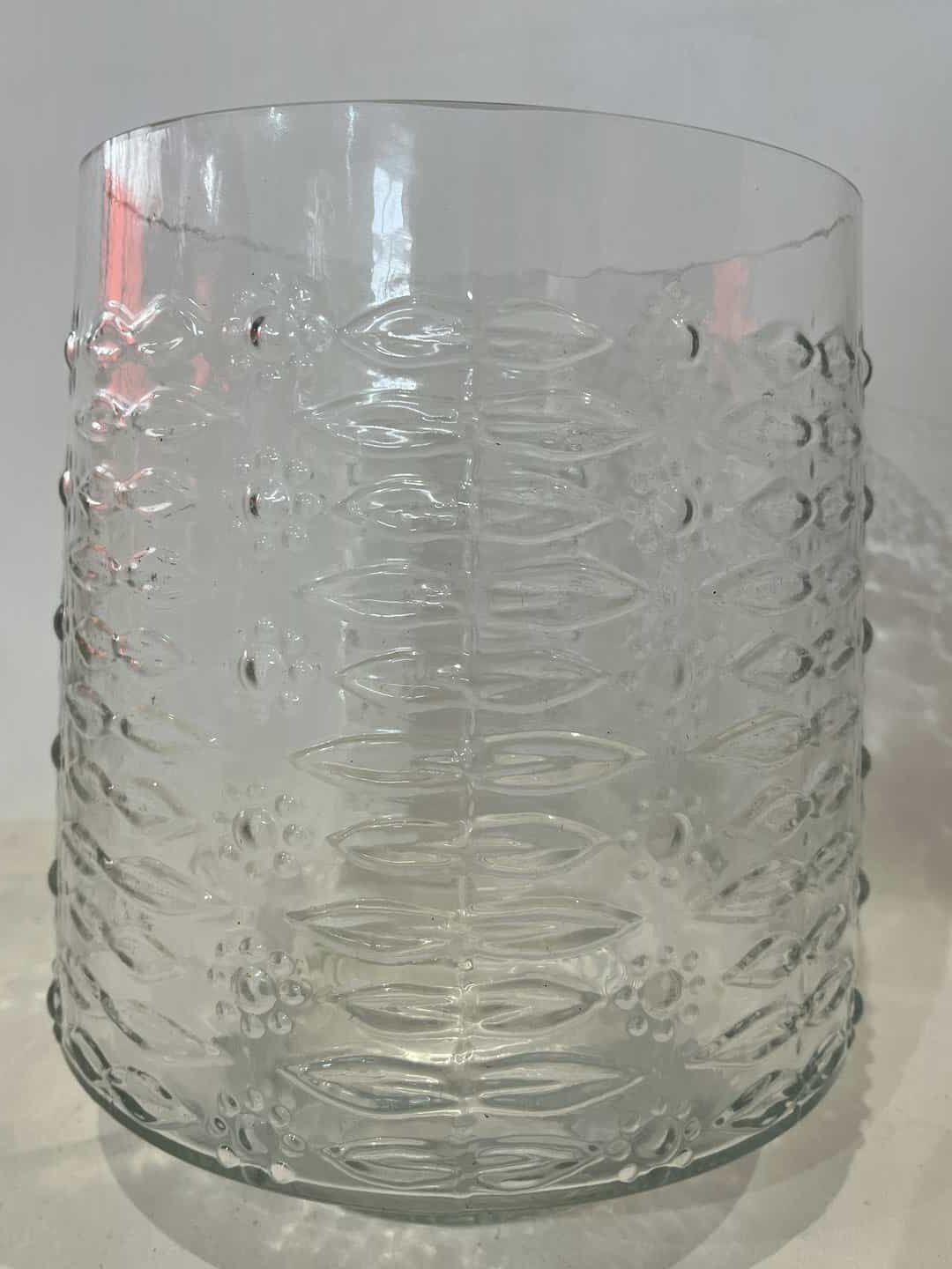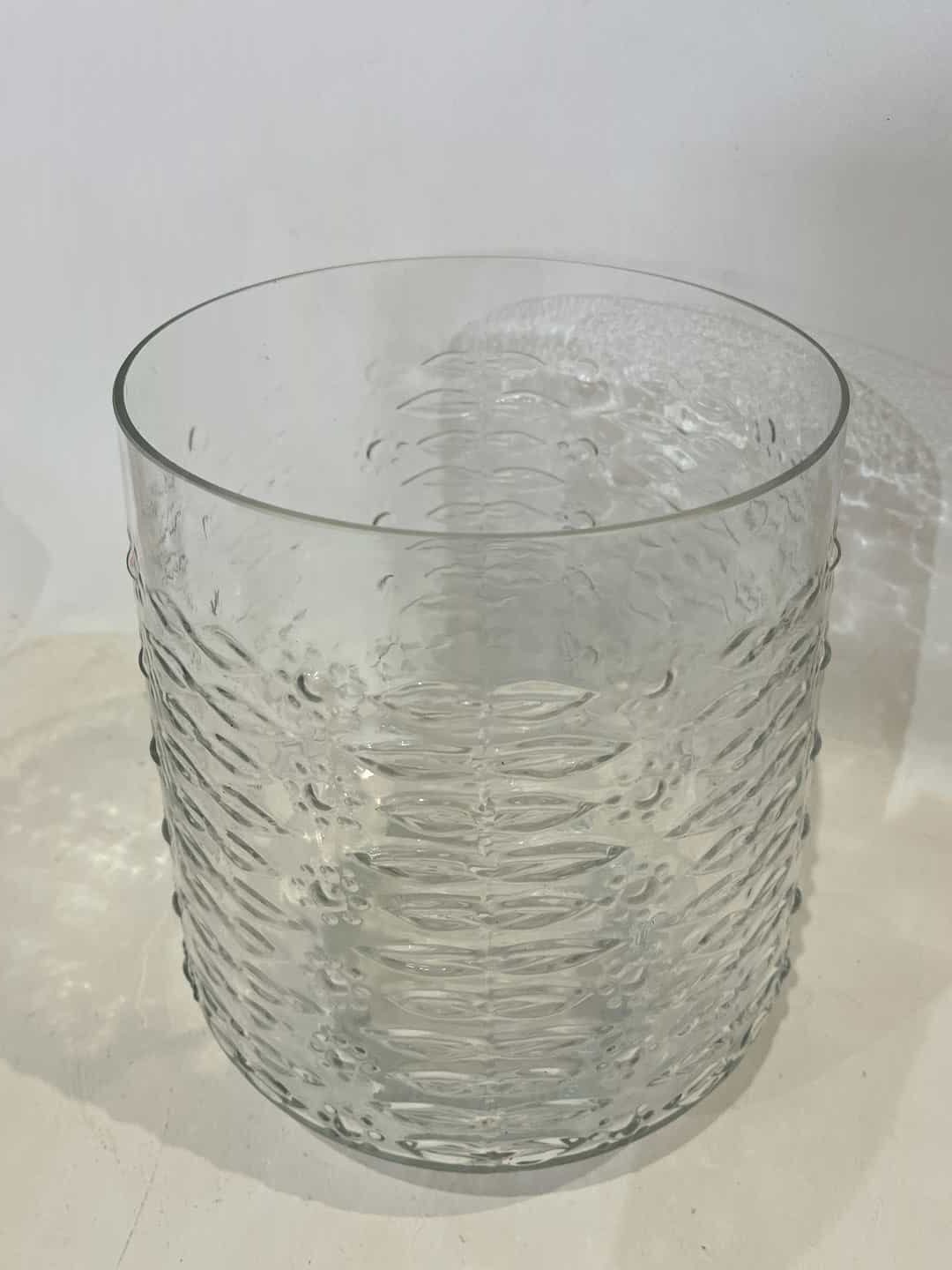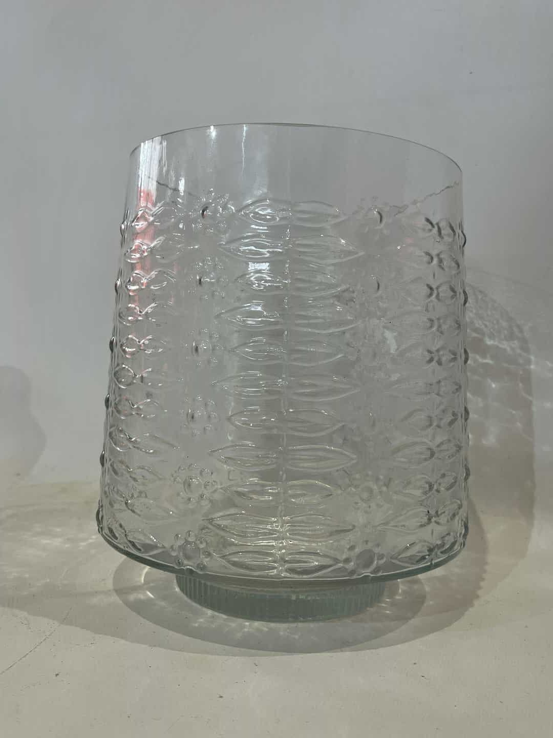 Vintage επιτραπέζιο διακοσμητικό γυάλινο βάζο με ανάγλυφο σχέδιο 23×18
