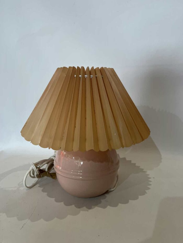 Vintage επιτραπέζιο φωτιστικό με κεραμική βάση και πλισέ αμπαζούρ 26×24