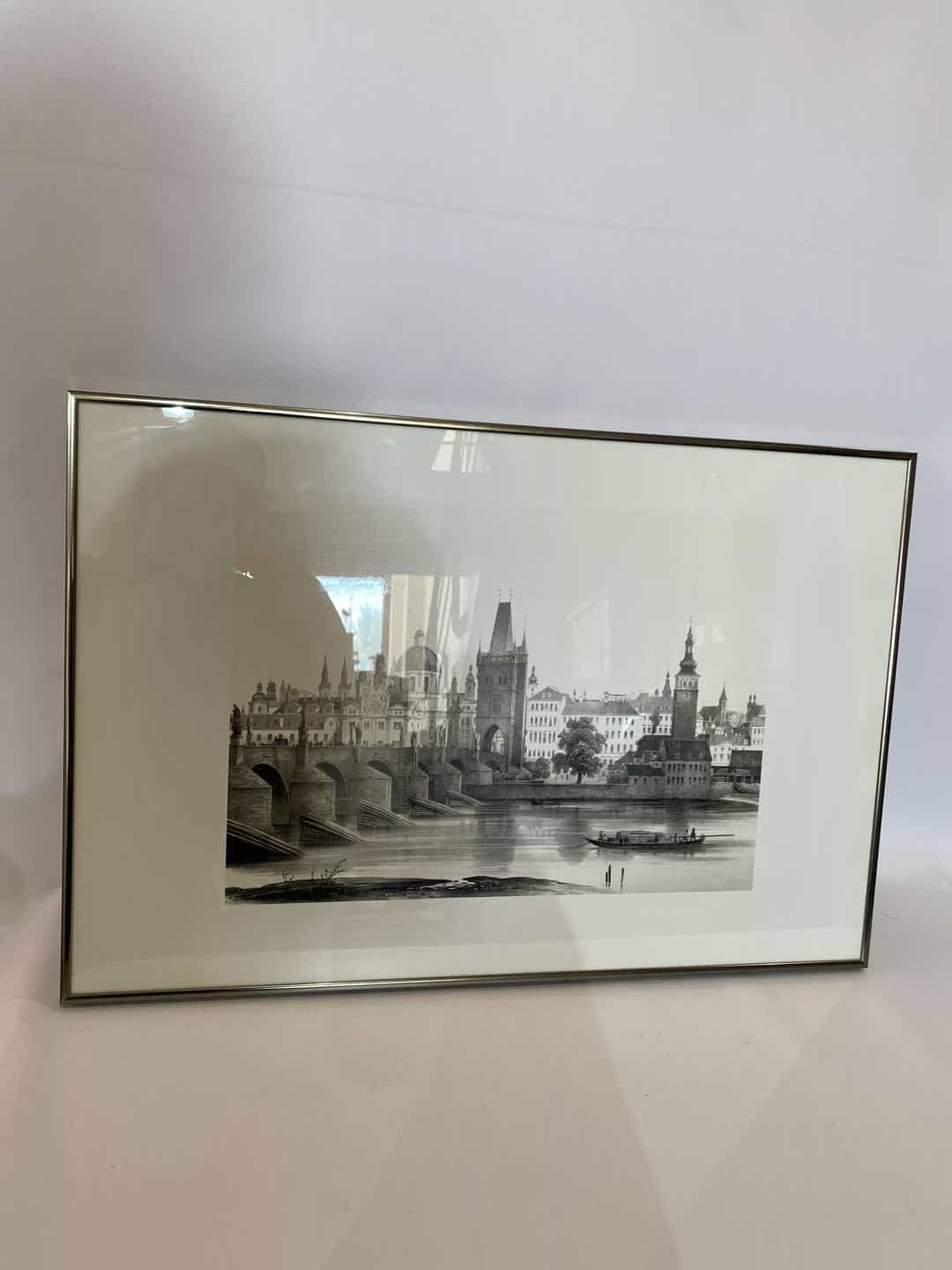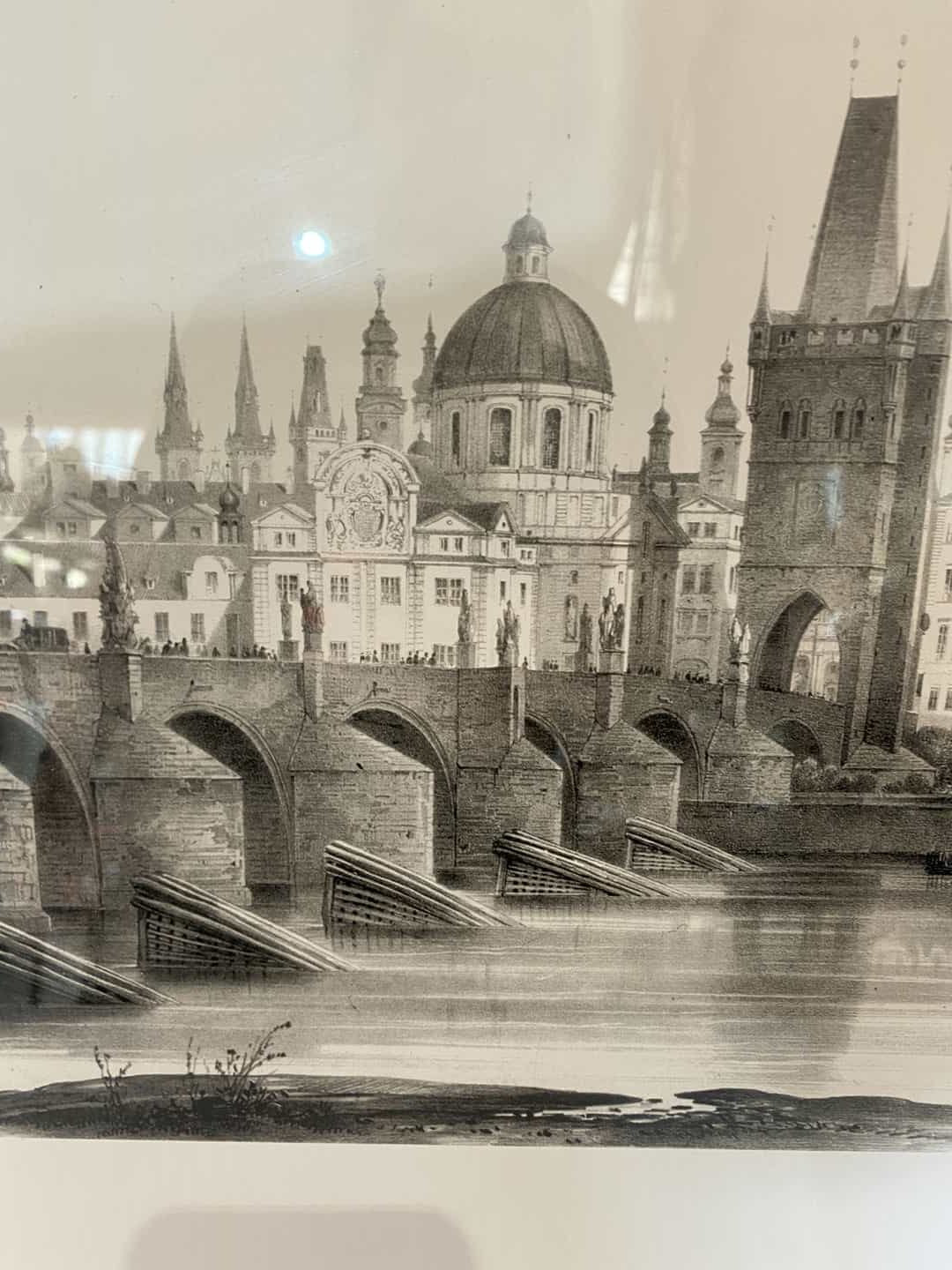 Vintage κάδρο με απεικόνιση τη Γέφυρα του Καρόλου στην Πράγα της Τσεχίας, εκτύπωση 46×67 Κωδικός προϊόντος: #s13018