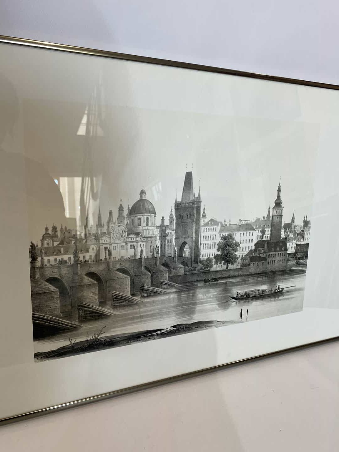 Vintage κάδρο με απεικόνιση τη Γέφυρα του Καρόλου στην Πράγα της Τσεχίας, εκτύπωση 46×67