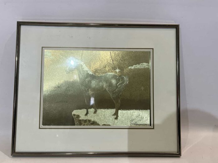 Vintage κάδρο τοίχου από χρυσό αλουμινόχαρτο δεκαετίας του ’80 με υπογραφή Jean Roy 28,5×35