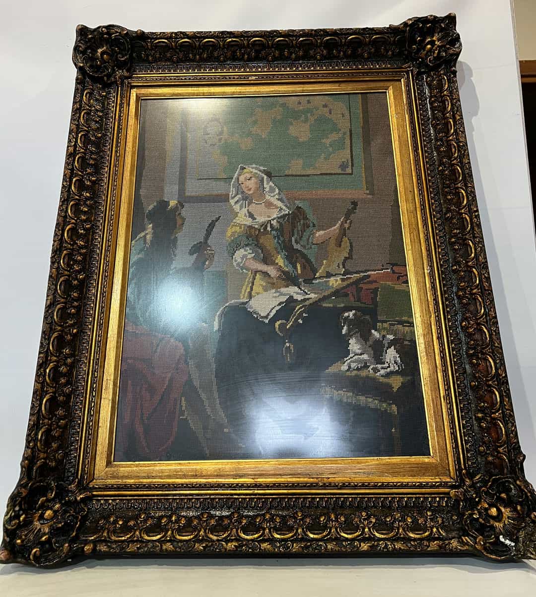 Vintage κεντητός πίνακας Κορίτσι με βιολί 91x72x5,5