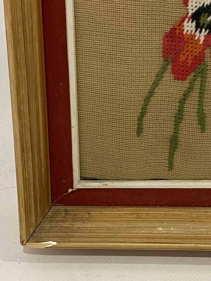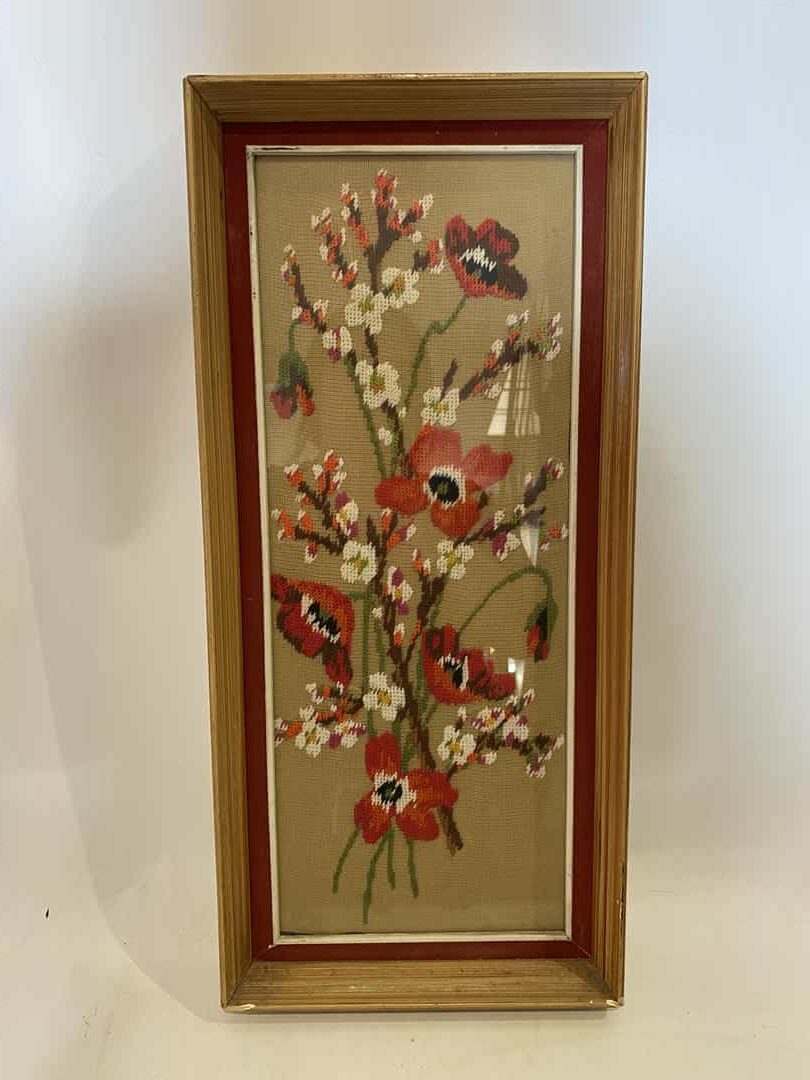Vintage κεντιτός πίνακας με λουλούδια 54×24 με φθορές Κωδικός προϊόντος: #s13856