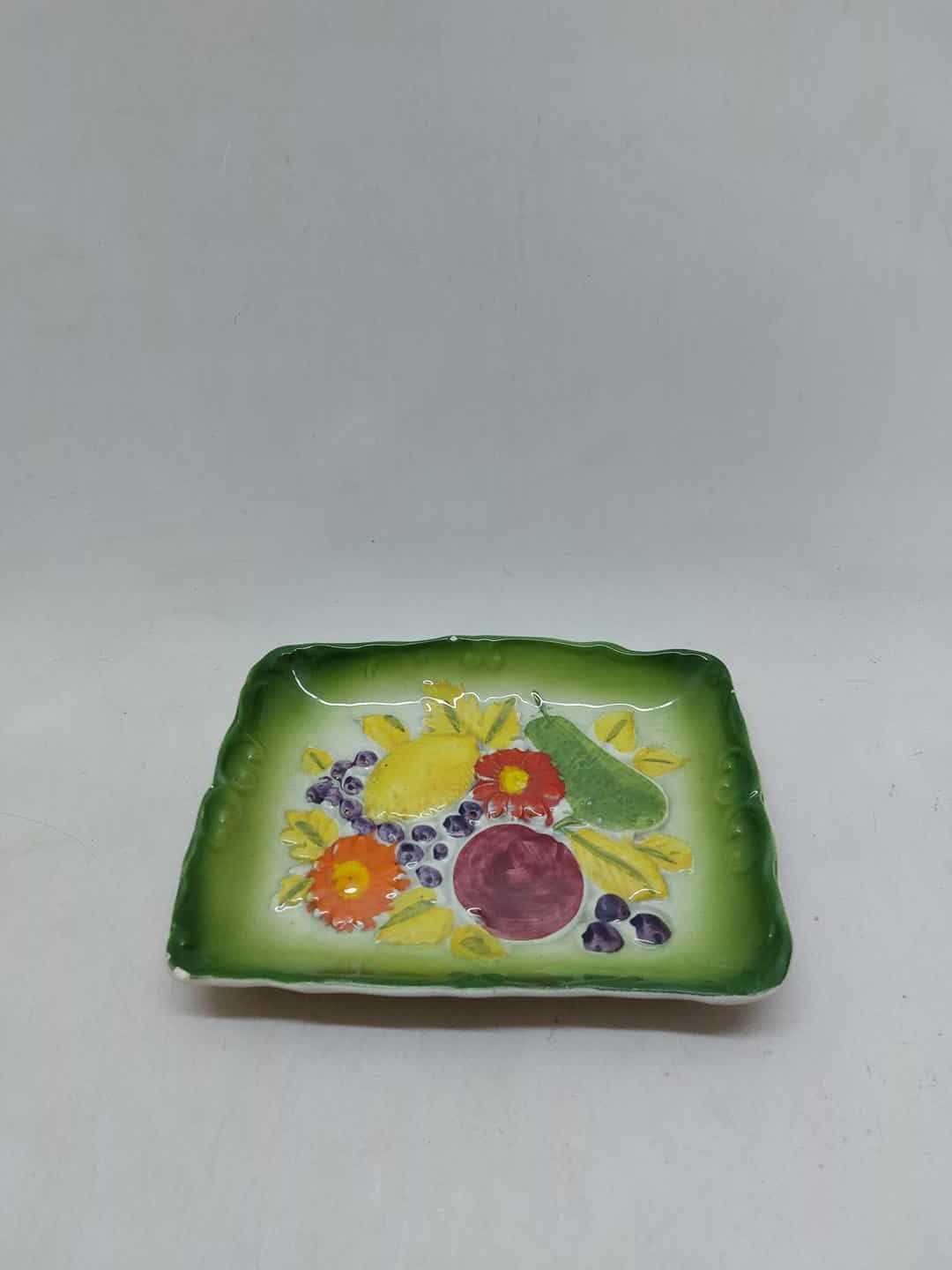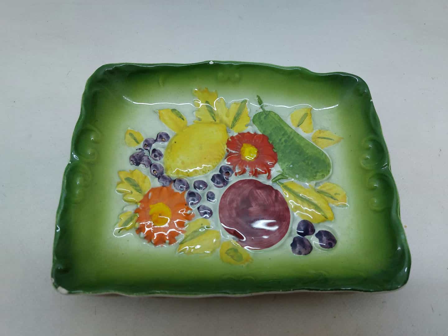 Vintage κεραμικό ανάγλυφο πιάτο σερβιρίσματος με σχέδια φρούτων 3x22x17cm.