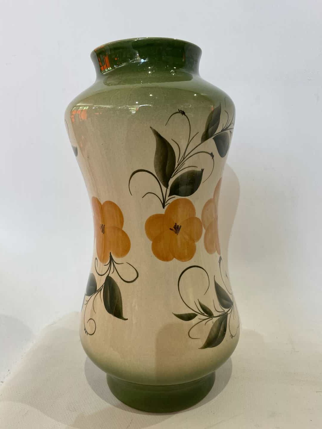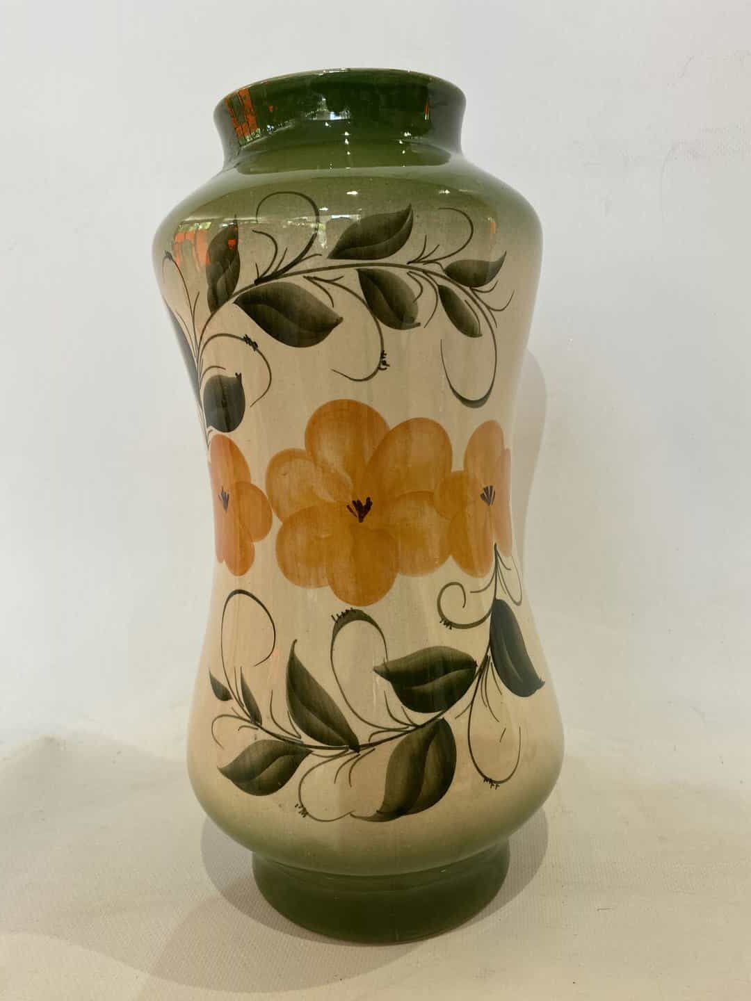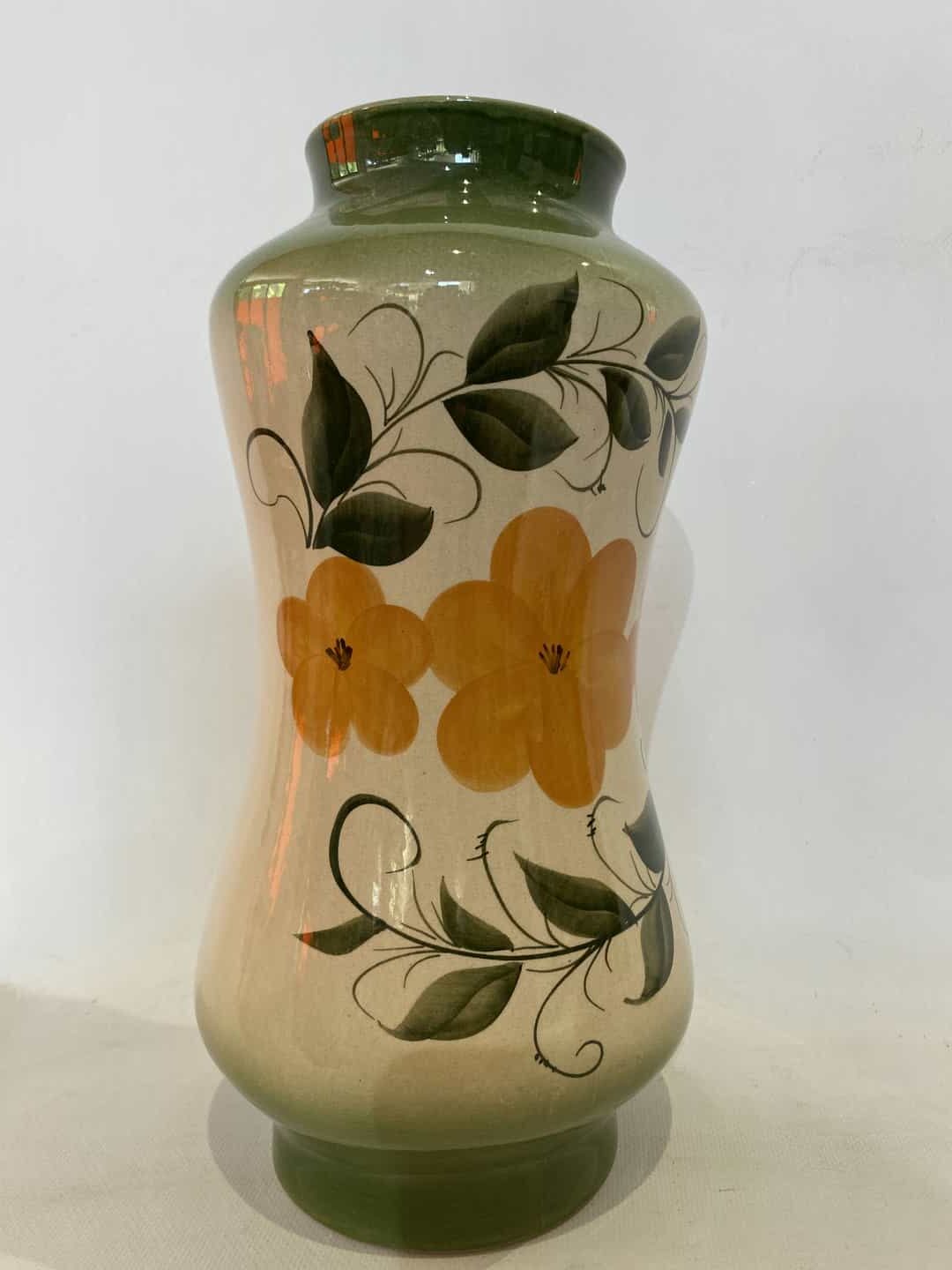Vintage κεραμικό βάζο με πράσινες αποχρώσεις και πορτοκαλί λουλούδια 30×15