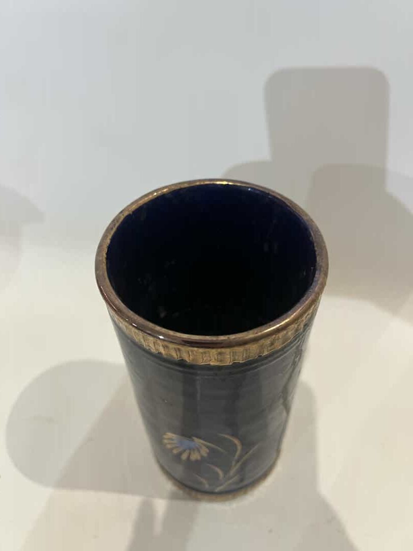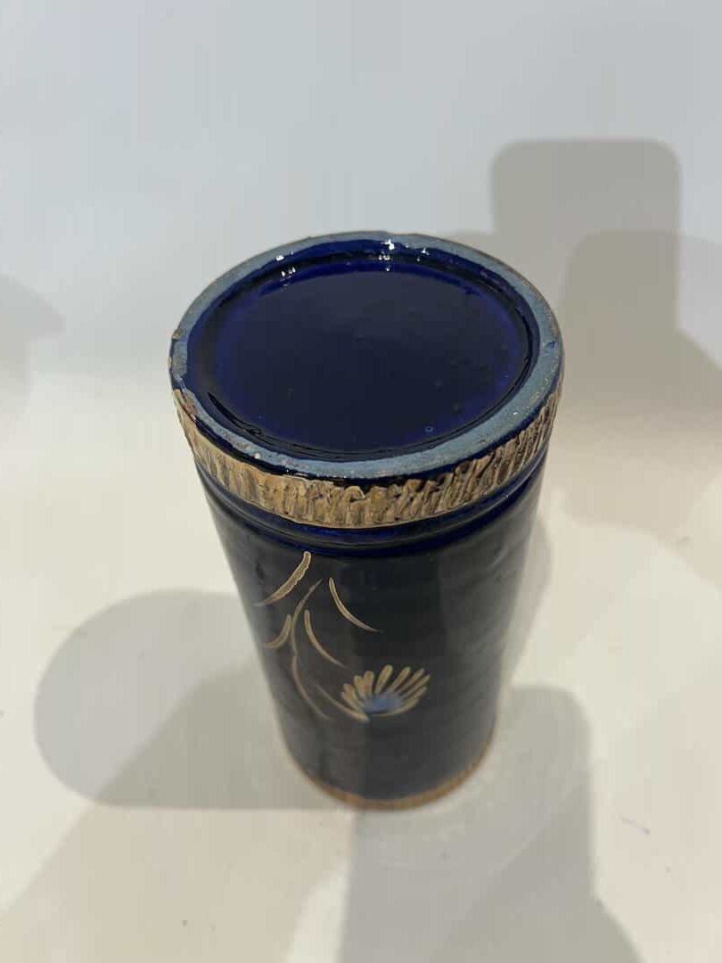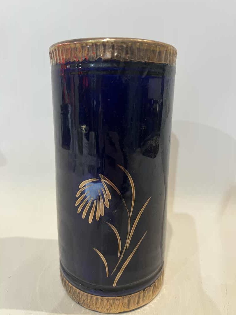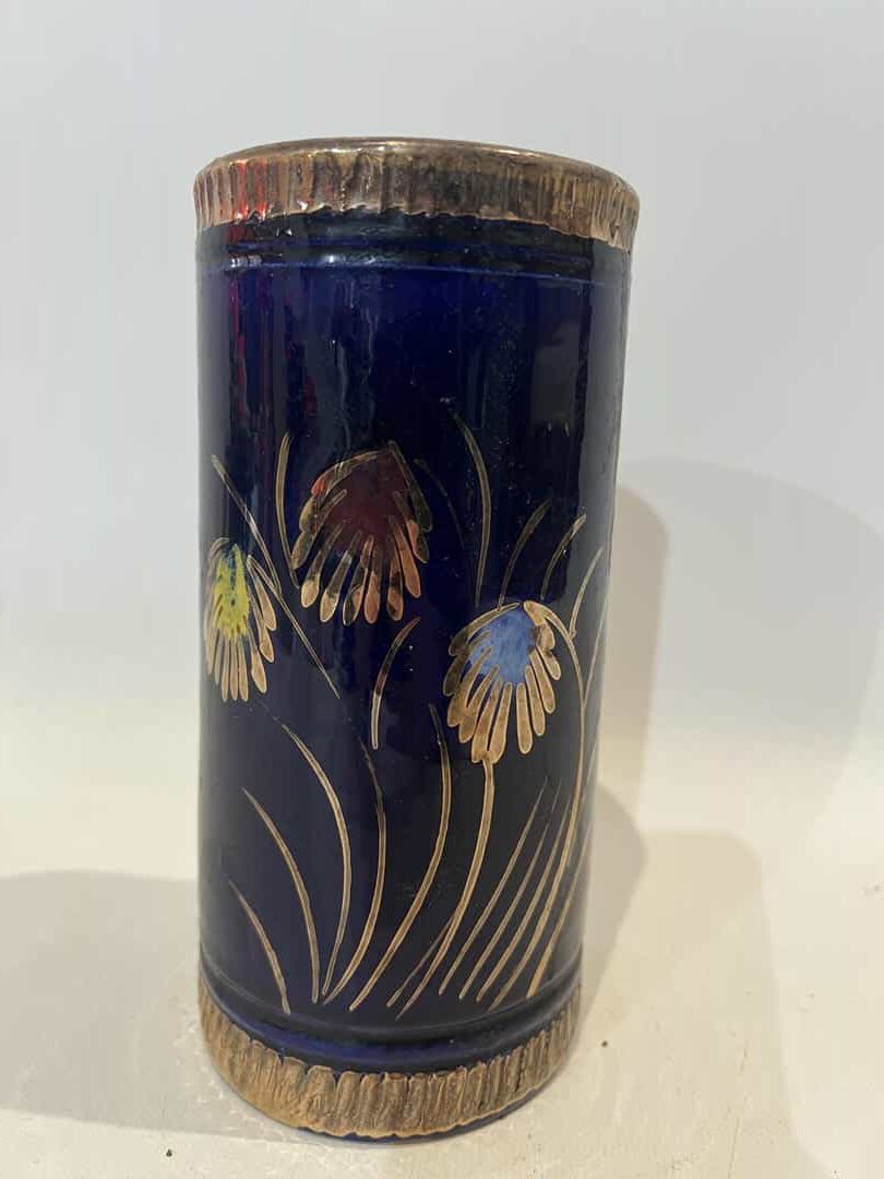 Vintage κεραμικό βάζο σε μπλε χρώμα με χρυσά σχέδια 18×8,5