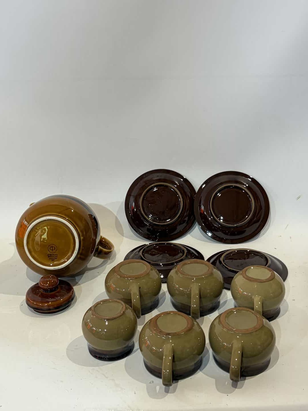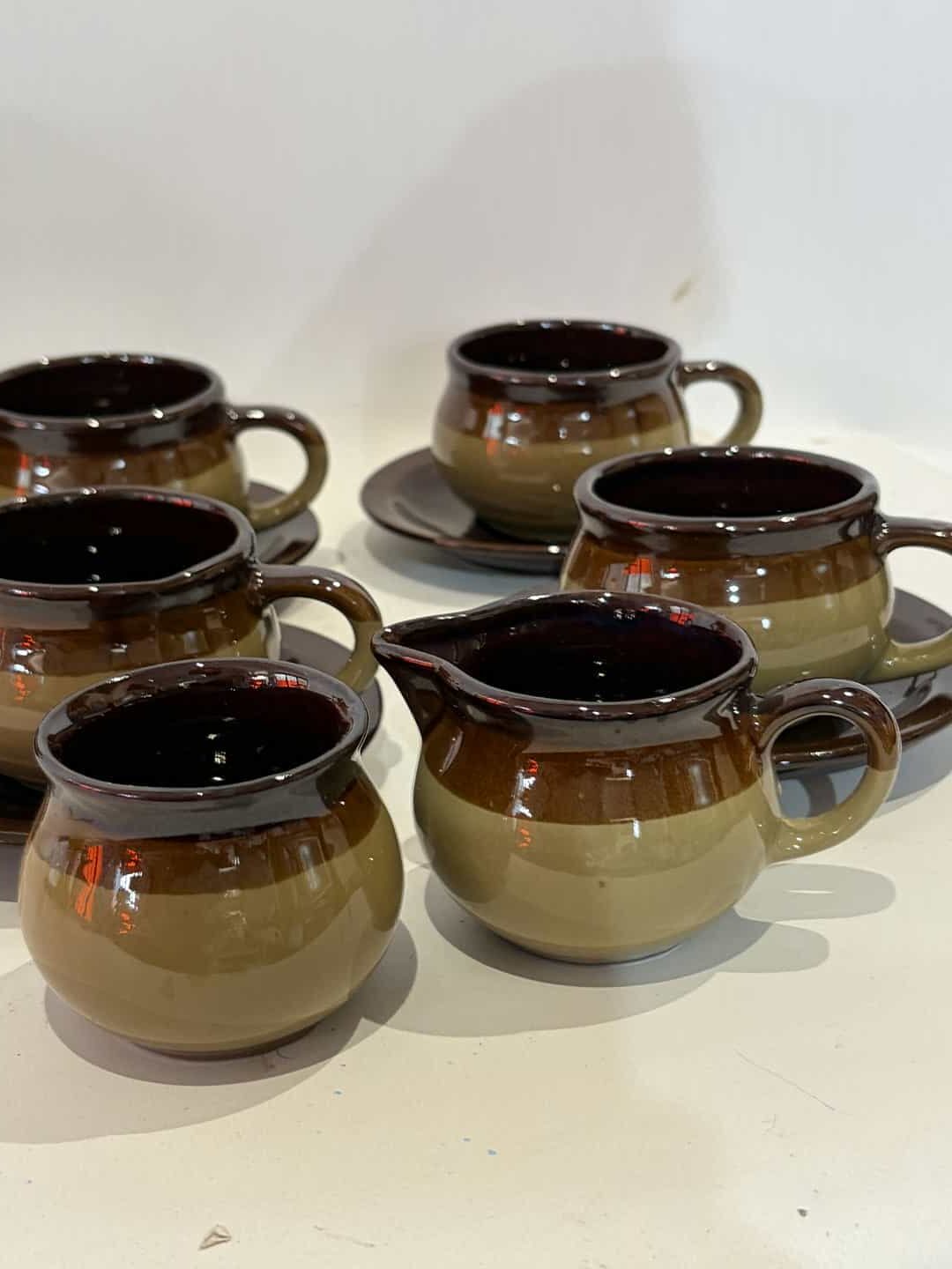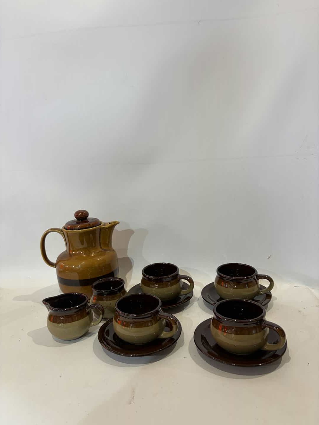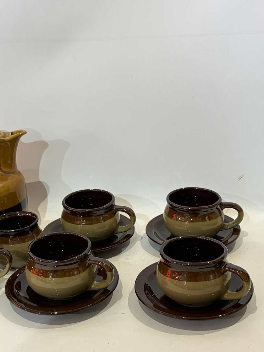 Vintage κεραμικό σετ καφέ με κανάτα:20×16,4 φλυτζάνια:6×12,ζαχαριέρα:6×6,γαλατιέρα:6×11,πιατάκια:14εκ  Κωδικός προϊόντος: #s14215