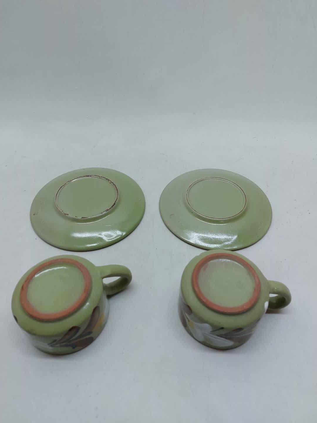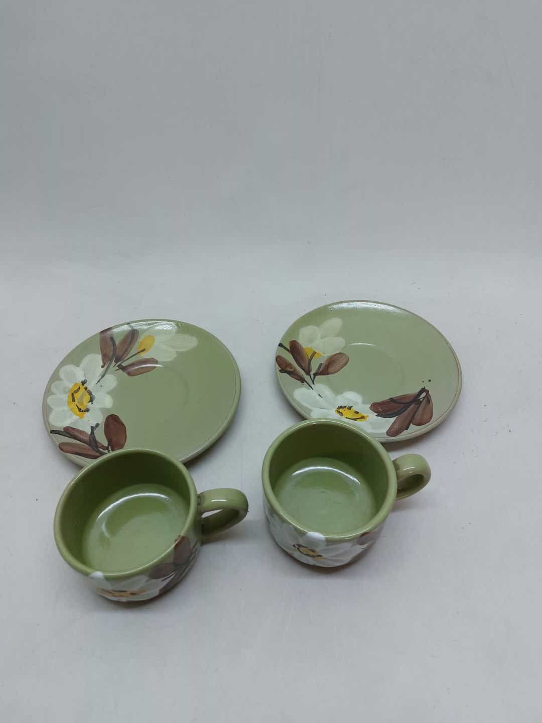 Vintage κεραμικό σετ τσαγιού/καφέ 4 τεμαχίων σε πράσινο χρώμα με λουλούδια