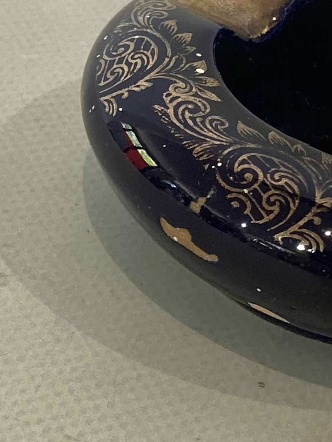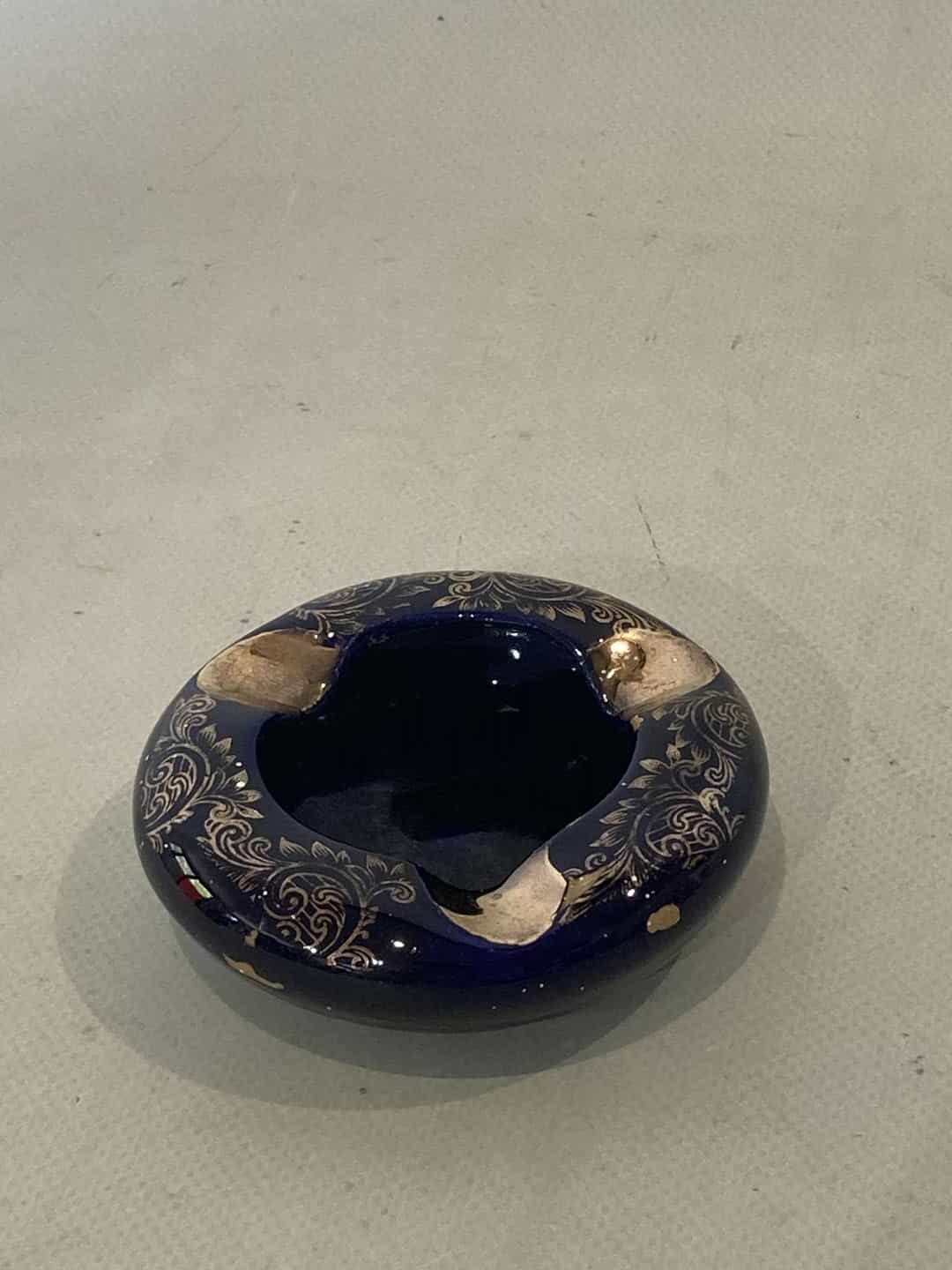Vintage κεραμικό σταχτοδοχείο μπλε με χρυσά σχέδια 3×7
