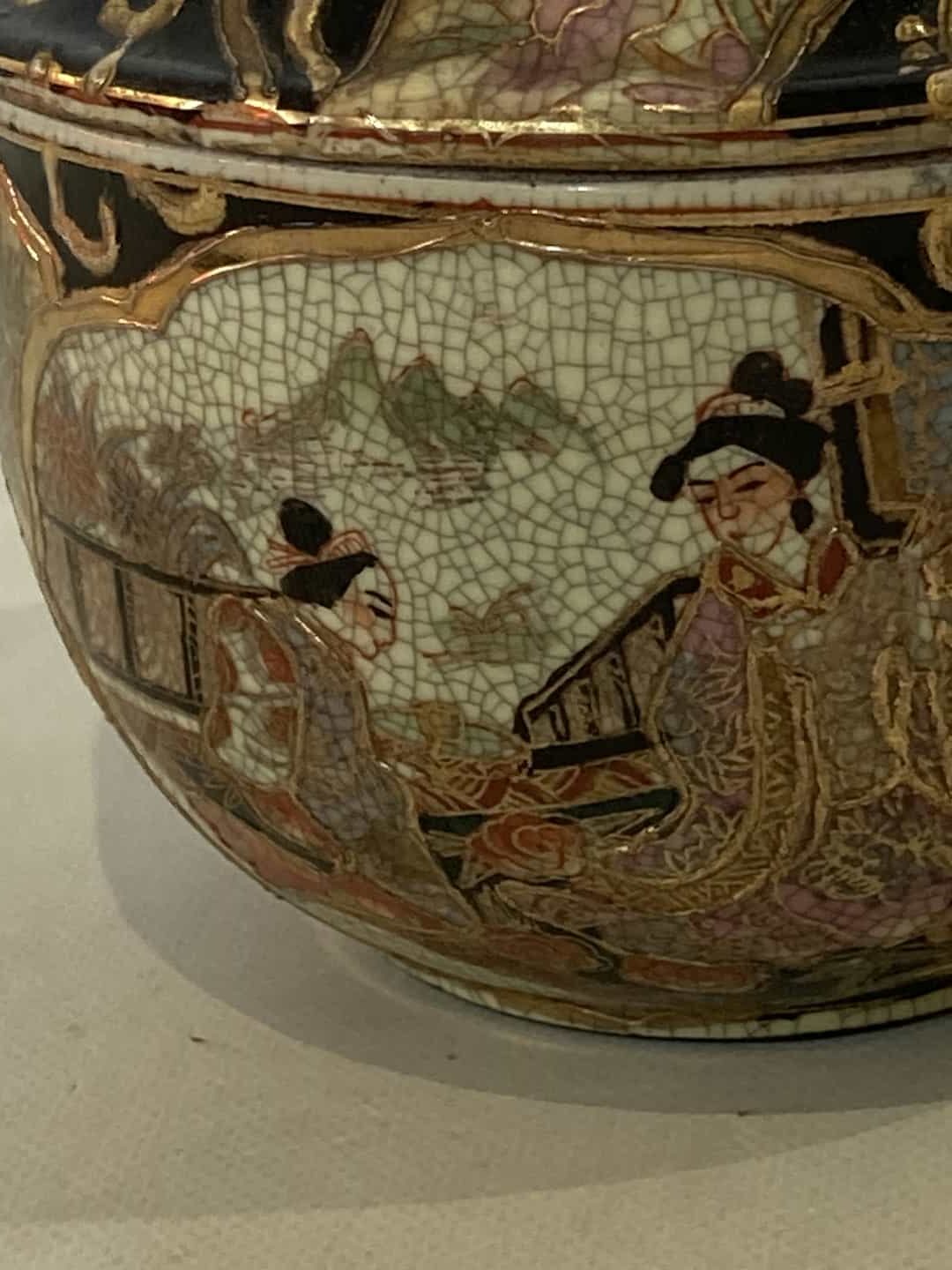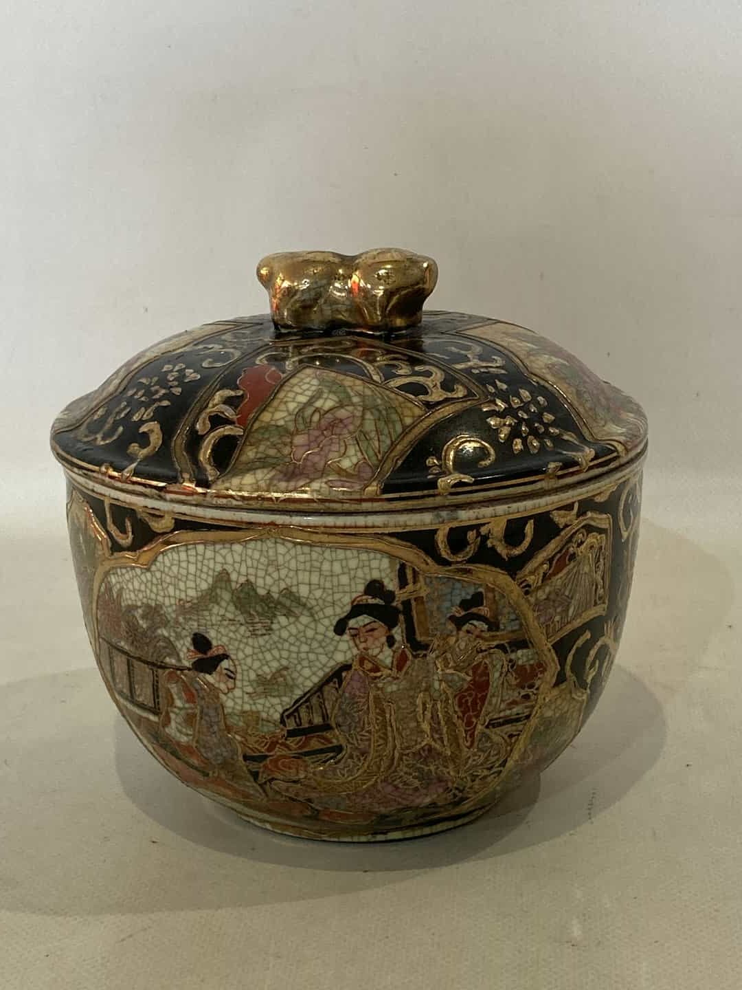 Vintage Κινέζικη κεραμική φοντανιέρα με καπάκι ζωγραφισμένη στο χέρι 17×15   Κωδικός προϊόντος: #s10091