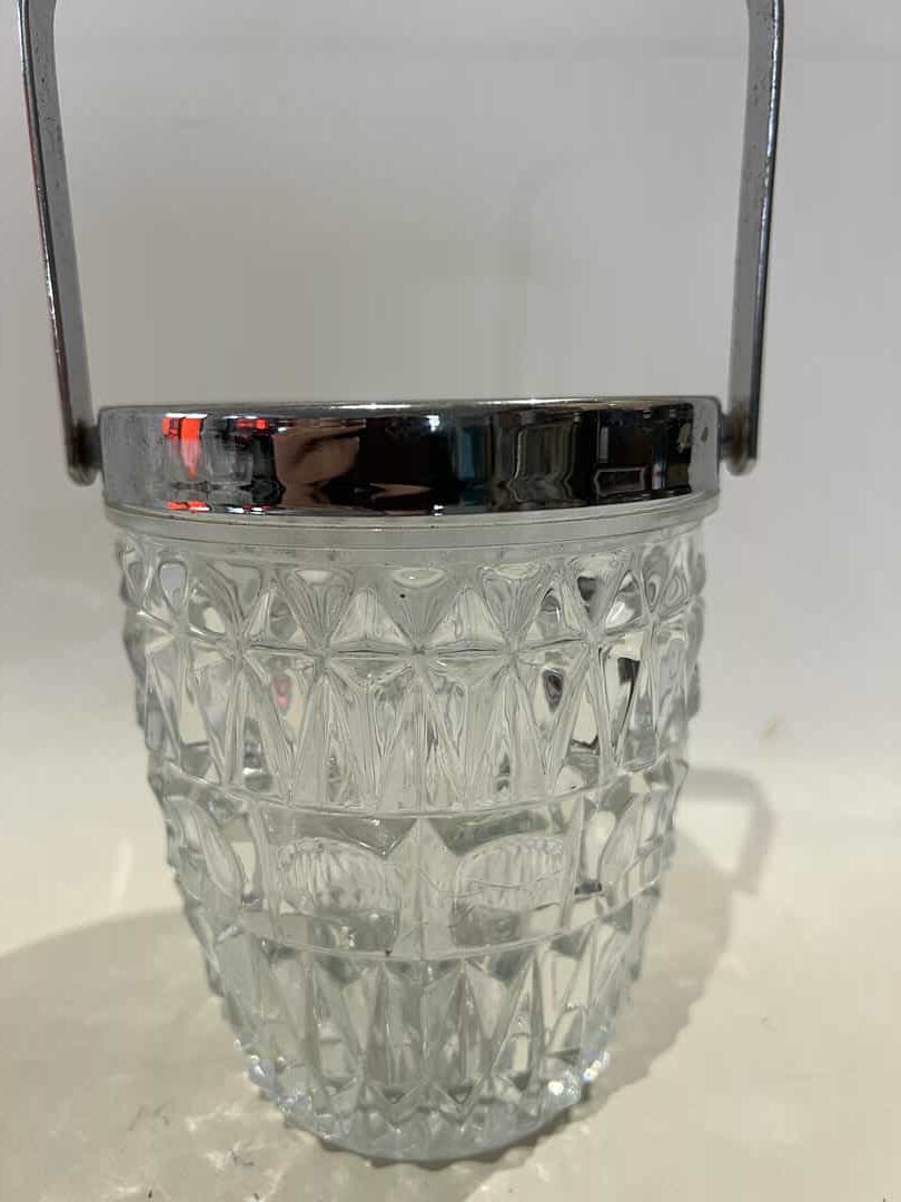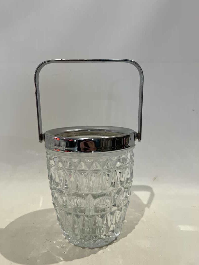Vintage κρυστάλλινη παγοθήκη με μεταλλική λαβή 13,5×12,5