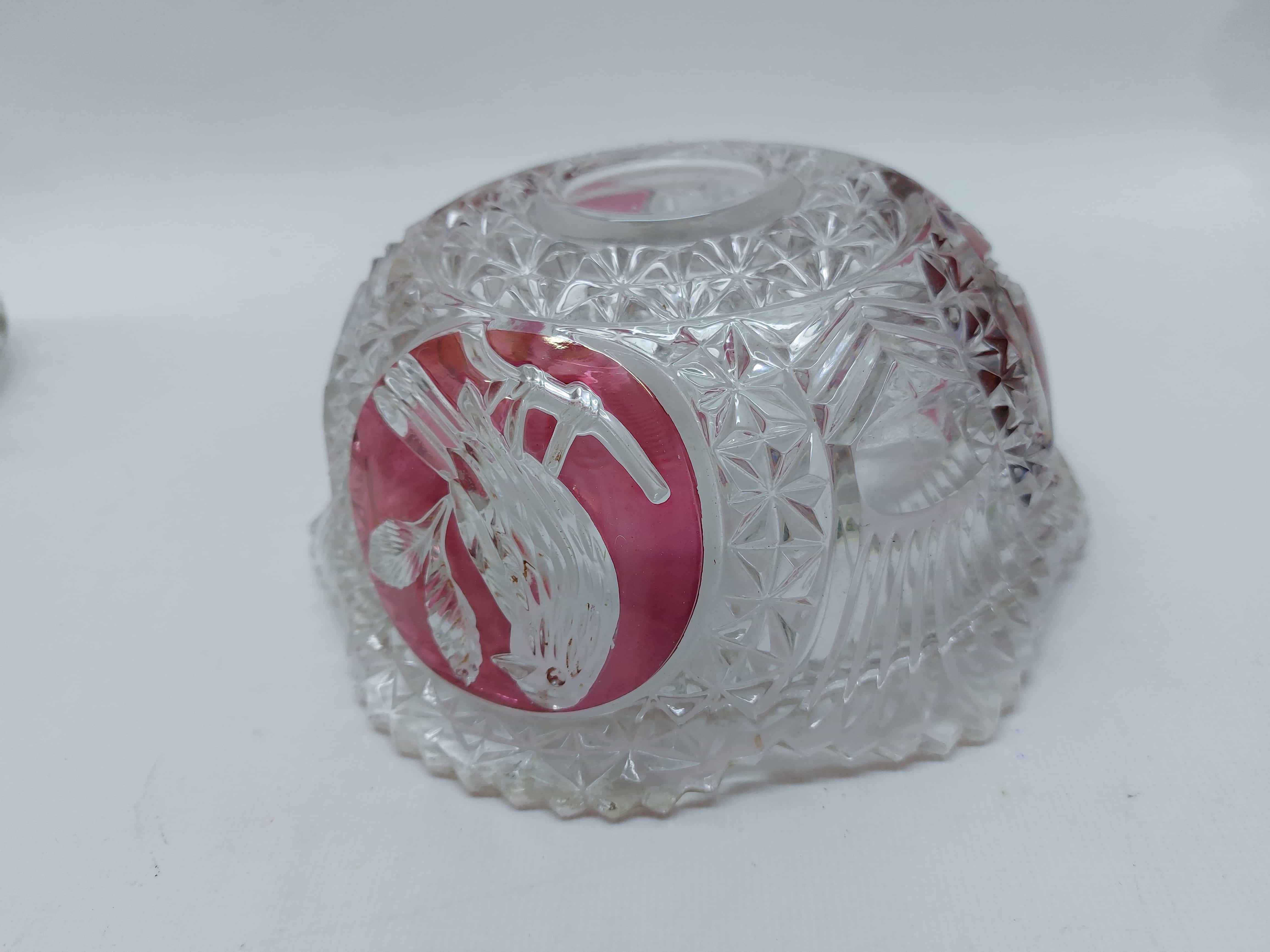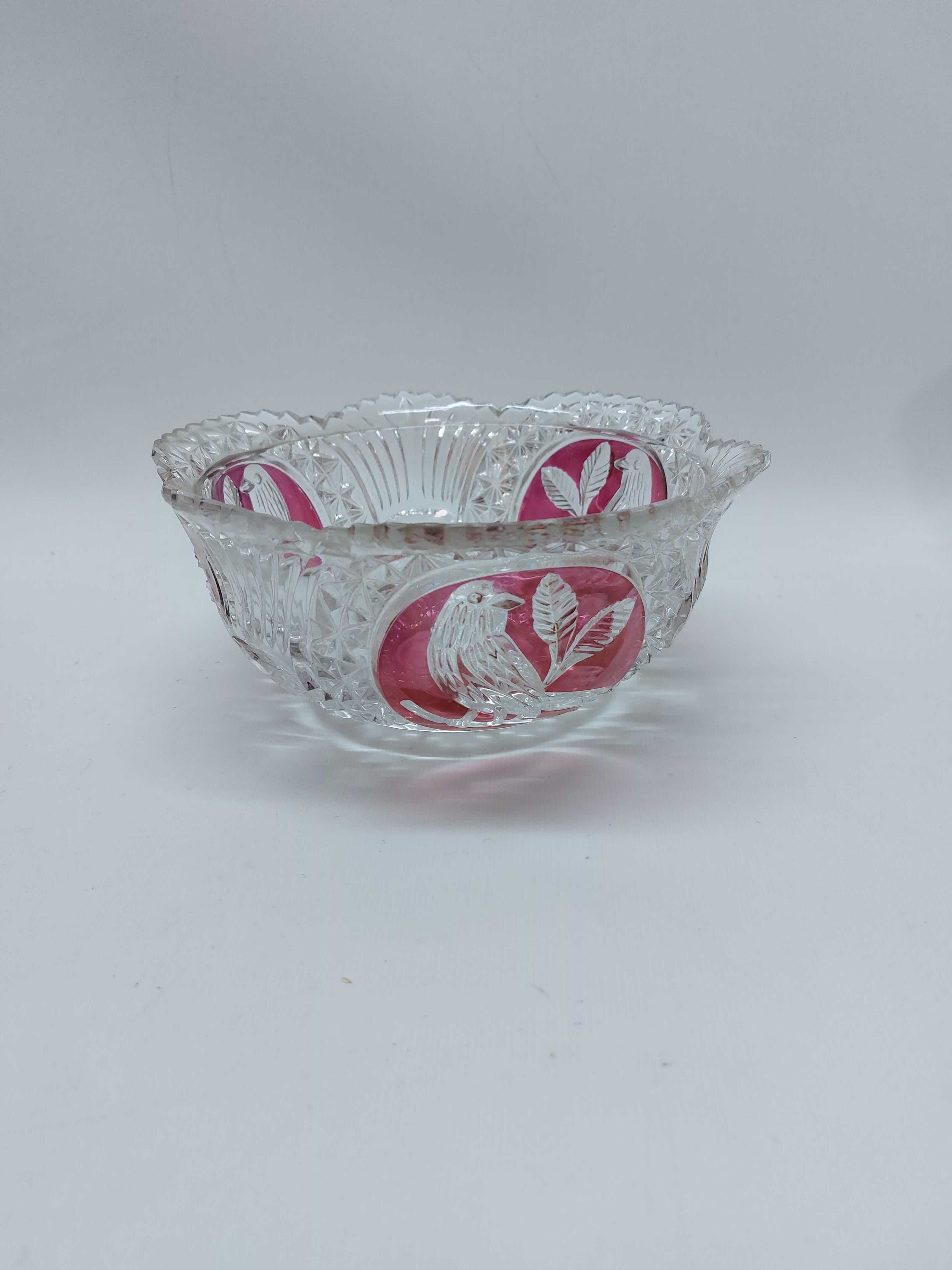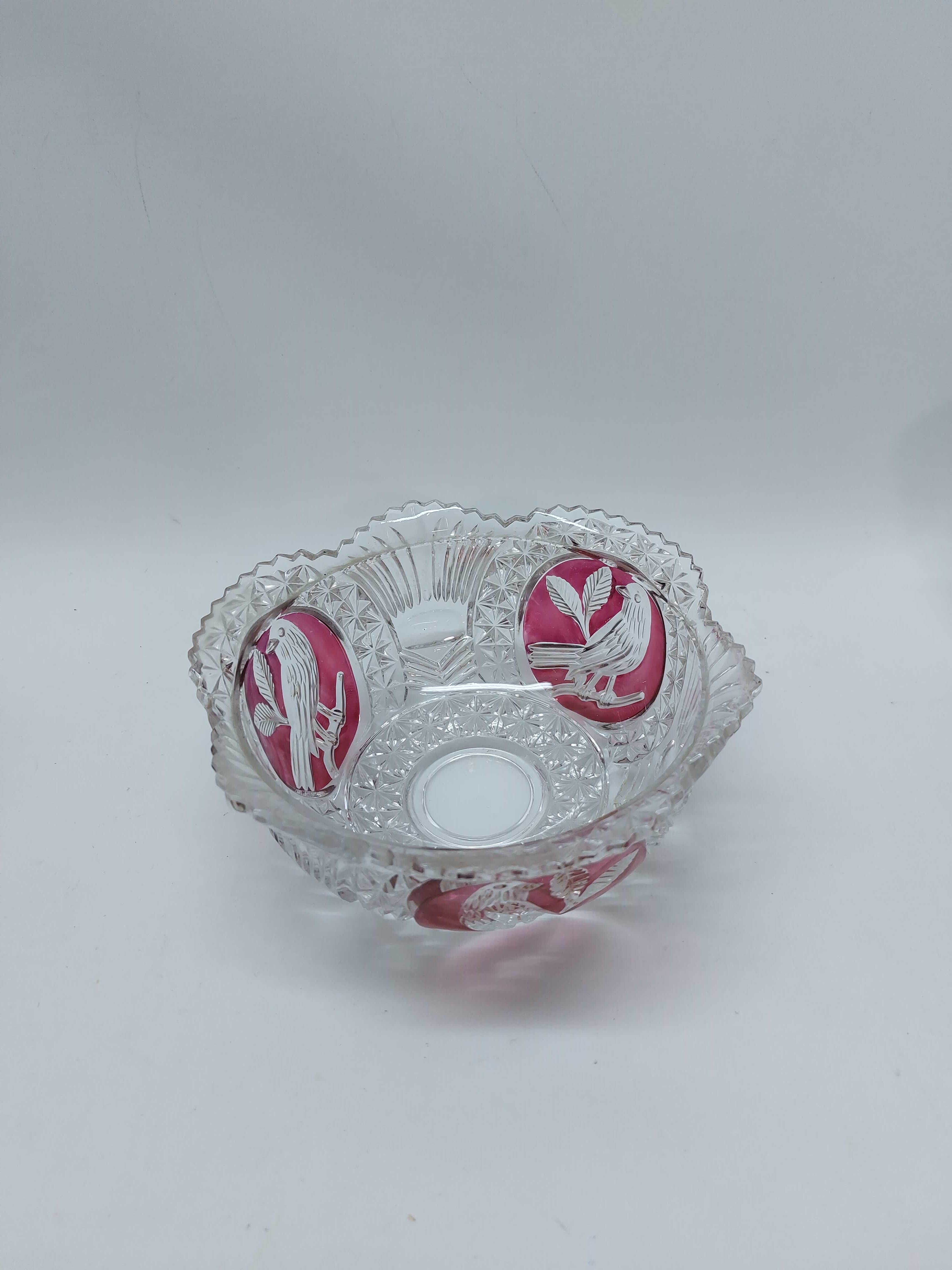 Vintage κρυστάλλινο μπολ με πουλιά και ροζ πινελιές Hofbauer Byrdes Collection
