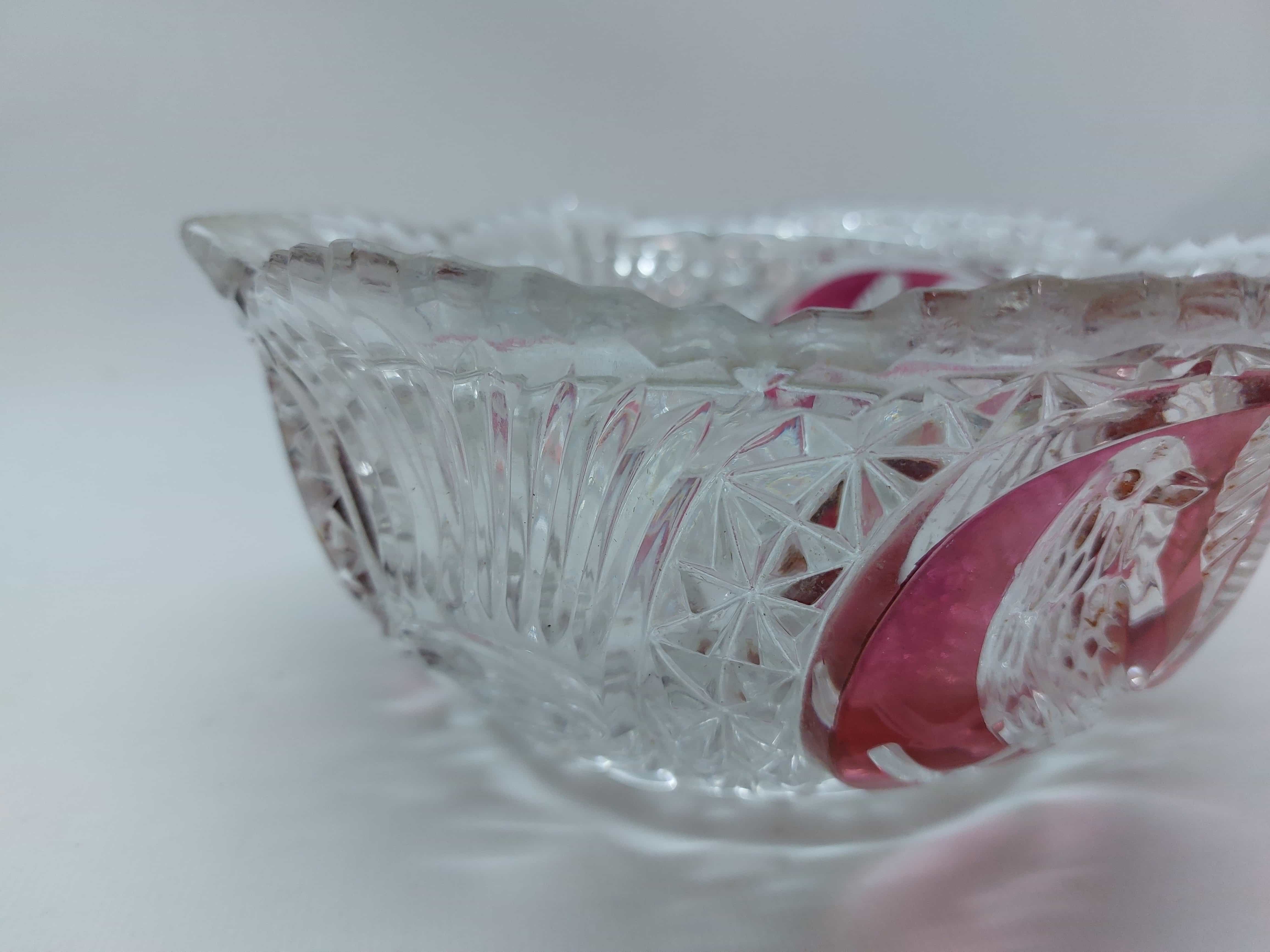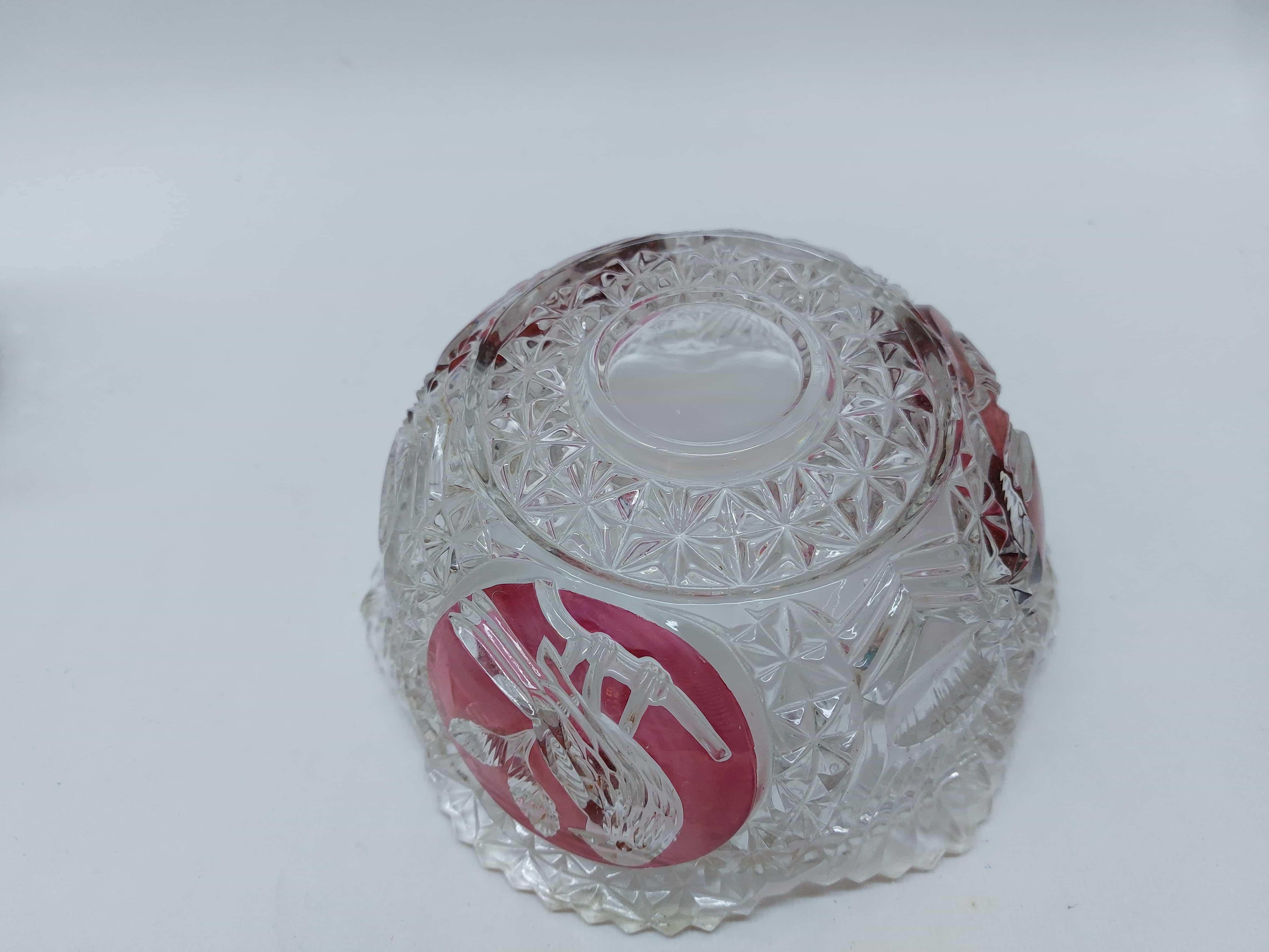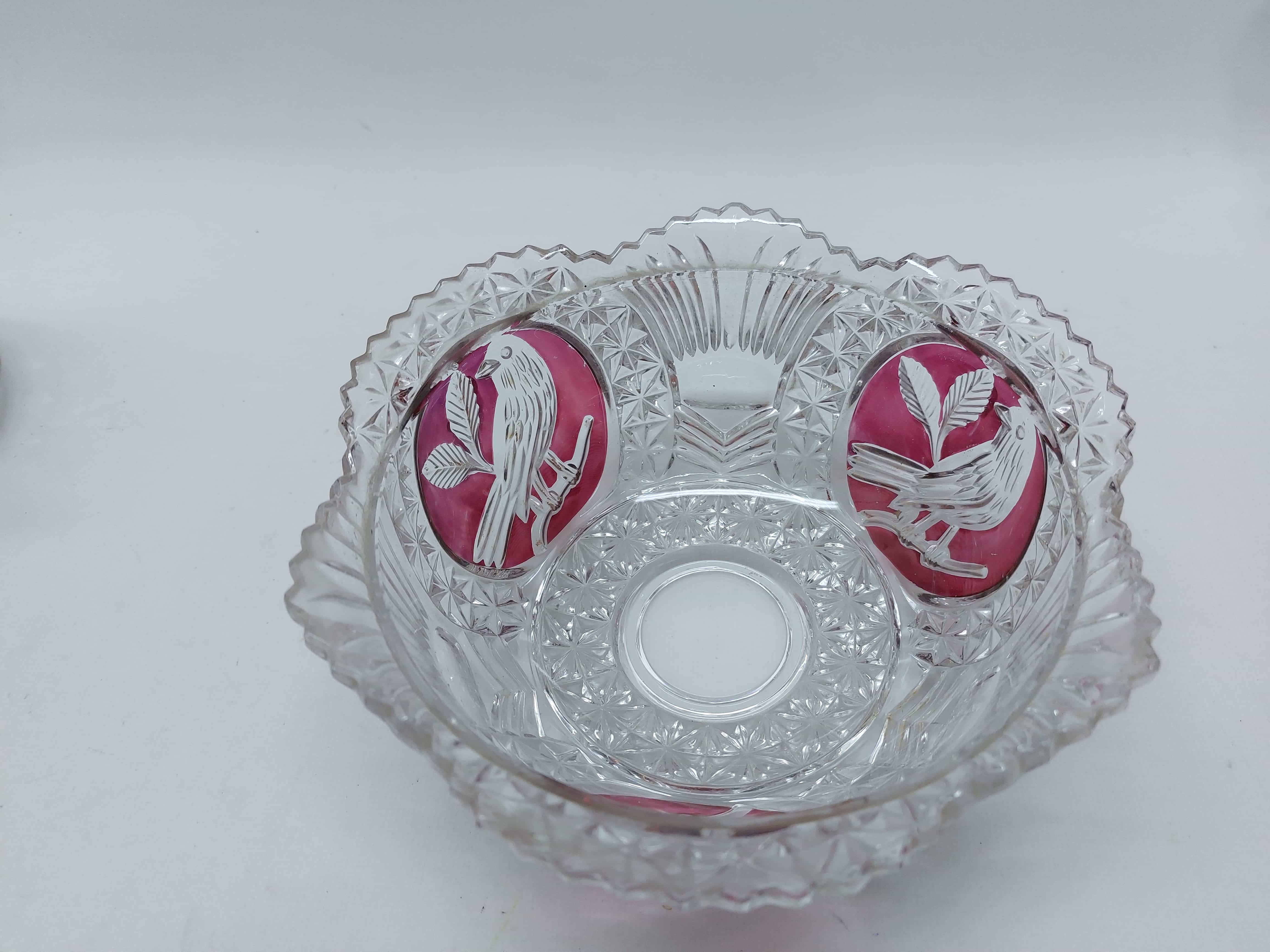 Vintage κρυστάλλινο μπολ με πουλιά και ροζ πινελιές Hofbauer Byrdes Collection