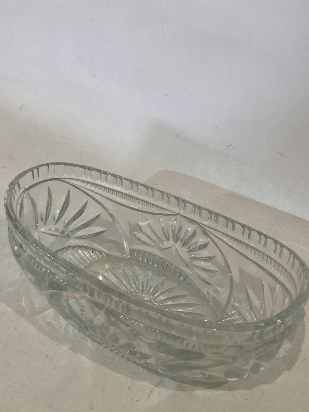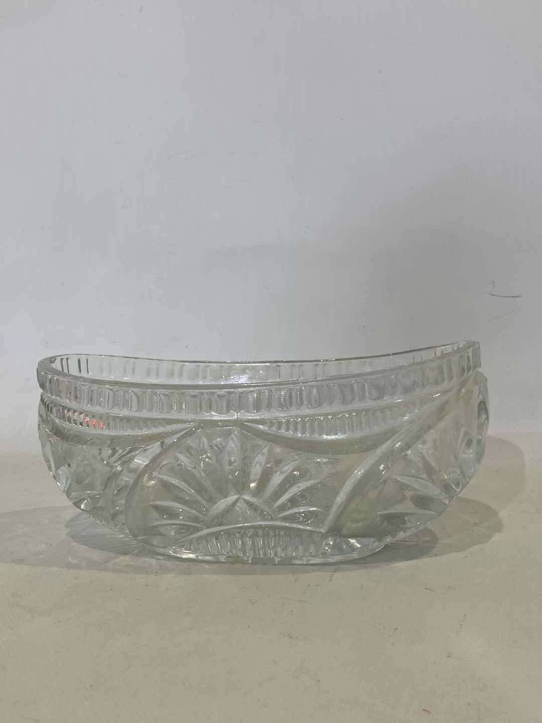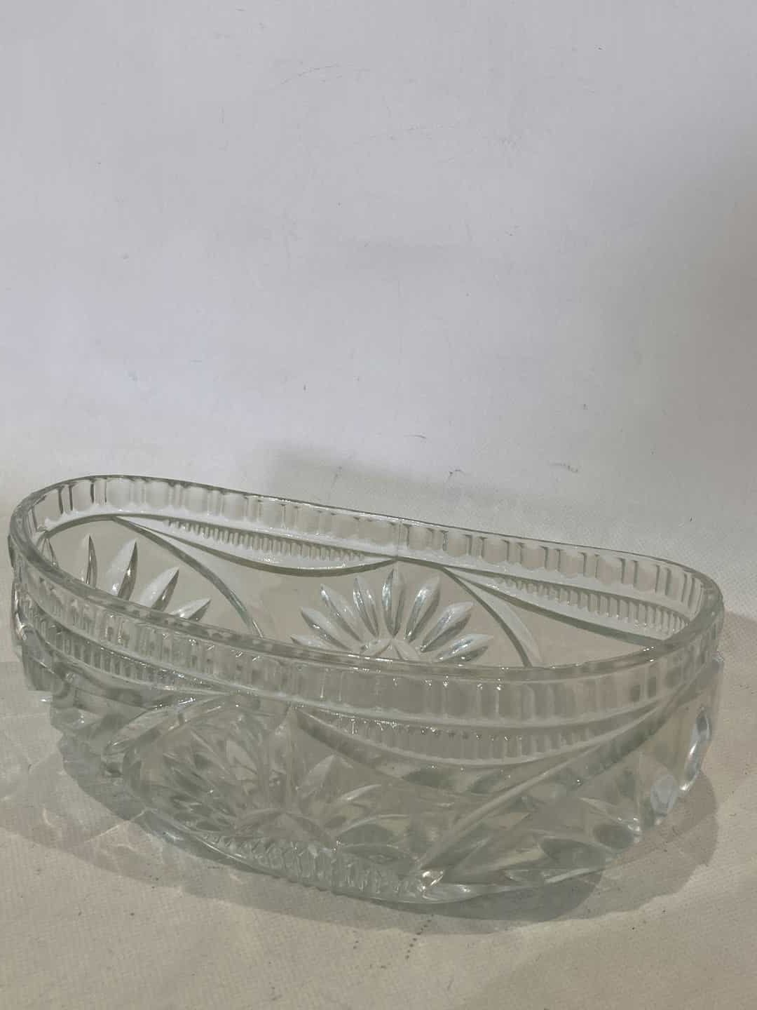 Vintage κρυστάλλινο οβάλ διακοσμητικό μπολ , με ανάγλυφα σχέδια 11x25x13 Κωδικός προϊόντος: #s9795