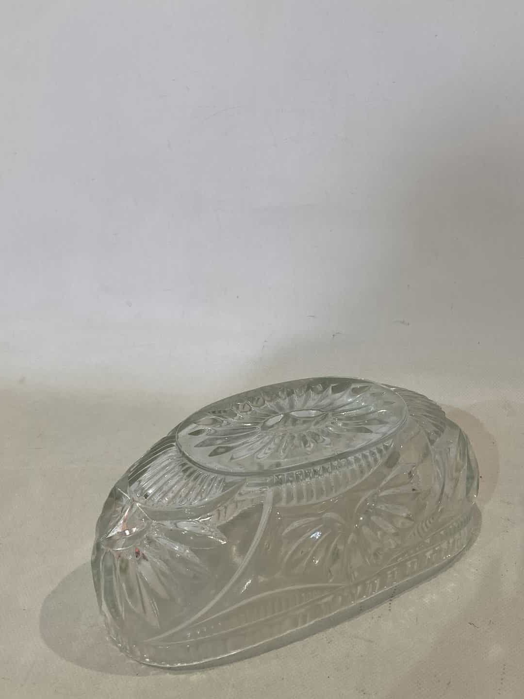 Vintage κρυστάλλινο οβάλ διακοσμητικό μπολ , με ανάγλυφα σχέδια 11x25x13
