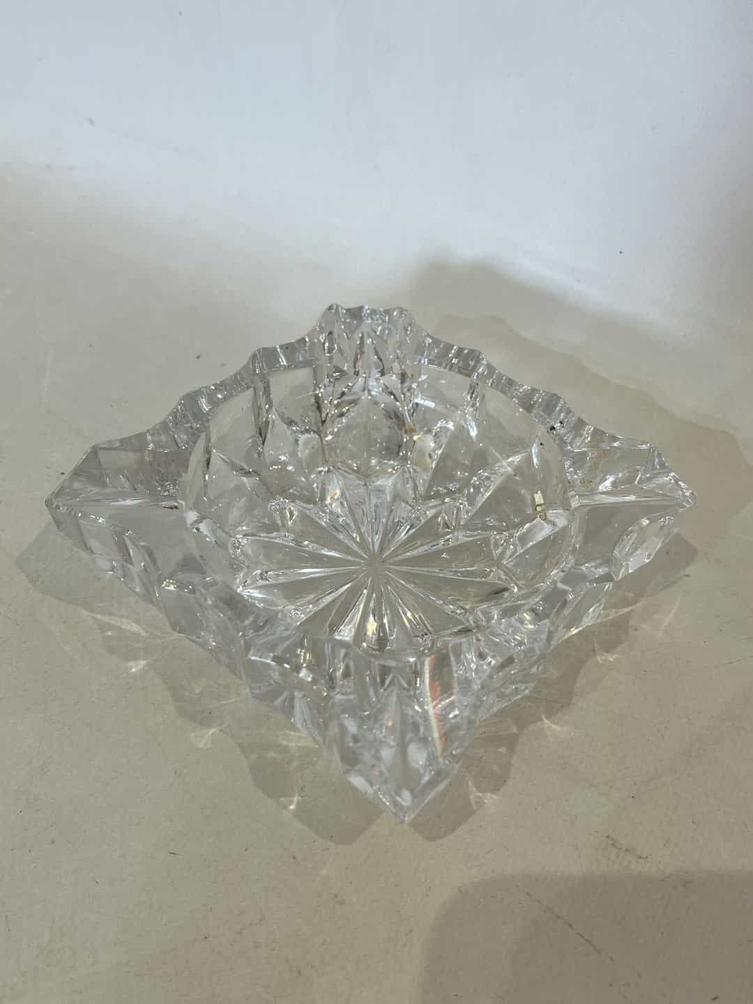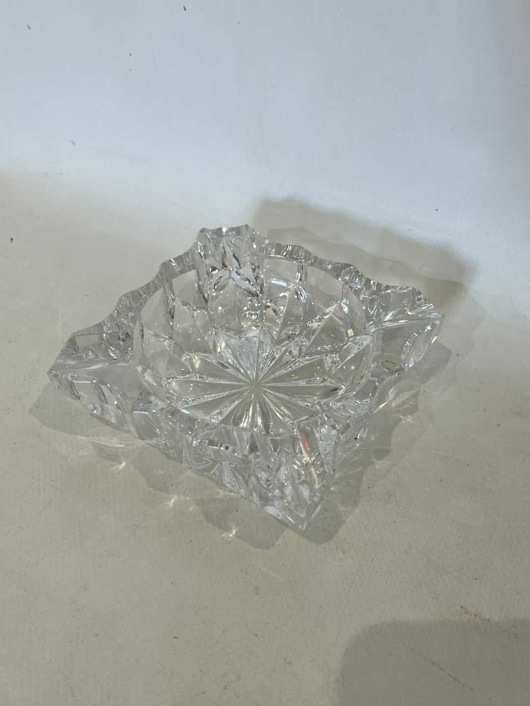 Vintage κρυστάλλινο σταχτοδοχείο δεκαετίας 1950 με ανάγλυφο κομμένο σχέδιο 3,5x11x11 Κωδικός προϊόντος: #s16790