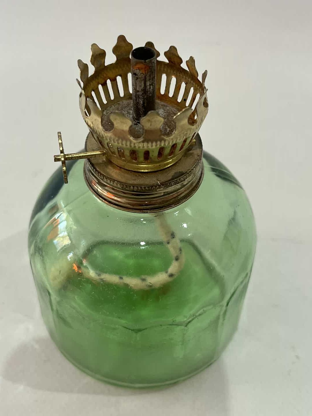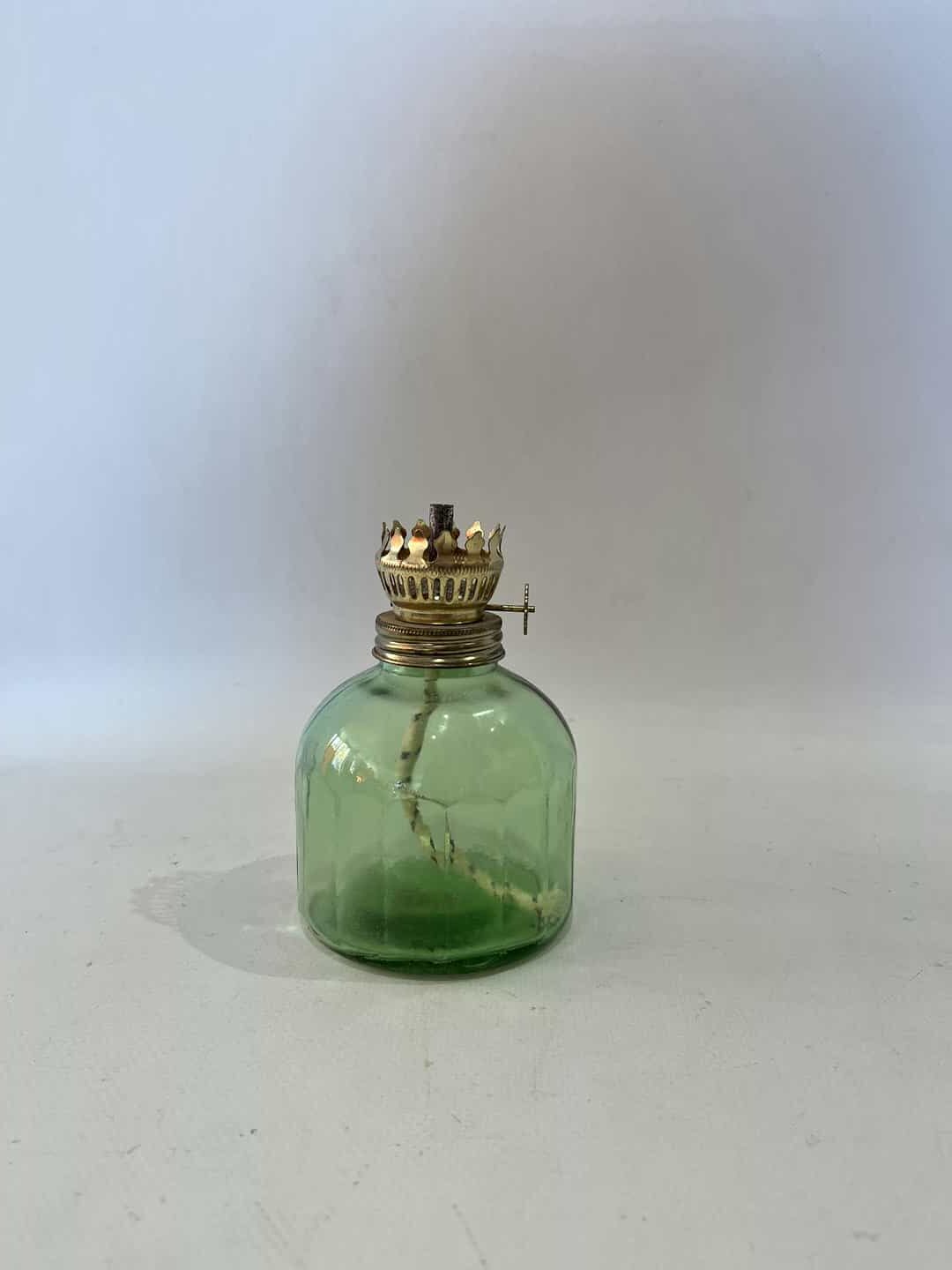 Vintage λάμπα πετρελαίου με πράσινο γυαλί, Art et Lumiere 11×7