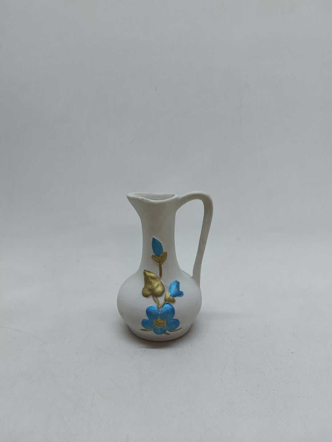 Vintage μίνι κεραμικό χειροποίητο βάζο με ανάγλυφα λουλούδια 11,5x8x7cm