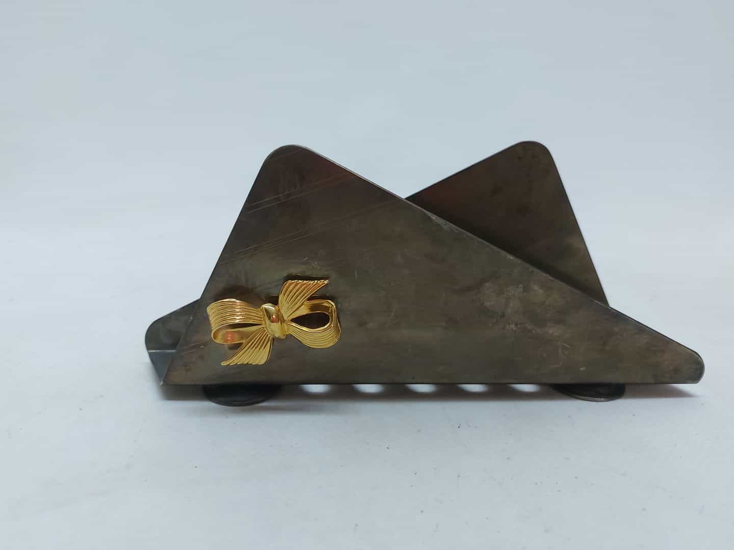 Vintage μεταλλική θήκη για χαρτοπετσέτες με φιόγκο σε χρυσό χρώμα 8,5x18x3cm Κωδικός προϊόντος: #s5981