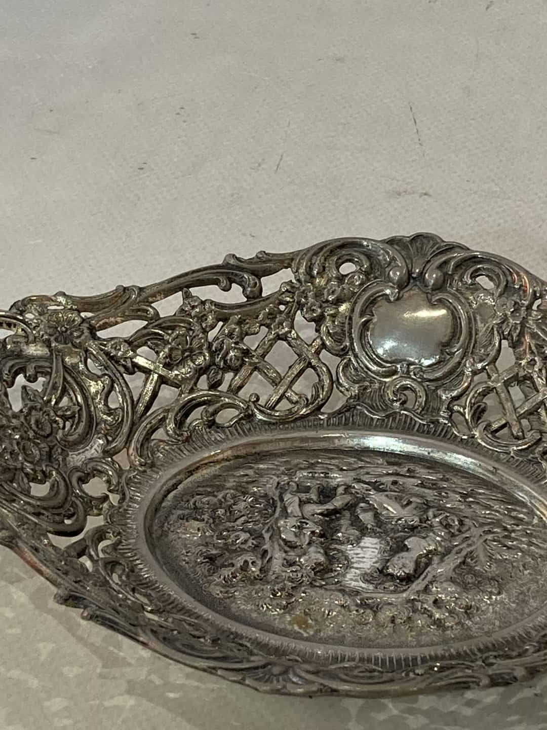 Vintage μεταλλική φοντανιέρα σερβιρίσματος , με ανάγλυφα σχέδια 3x19x14 Κωδικός προϊόντος: #s9909