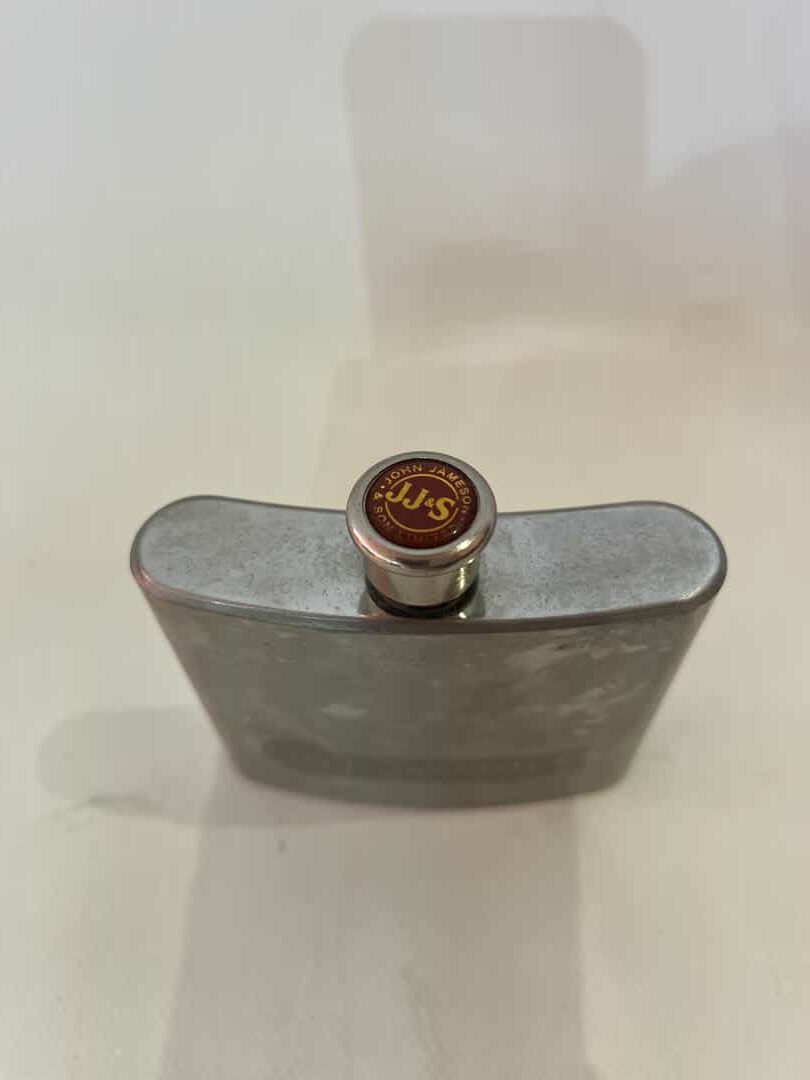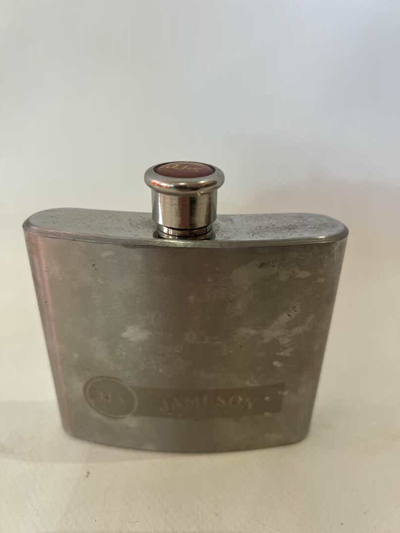 Vintage μεταλλικό φλασκί Jameson Irish Whiskey 9,5×9