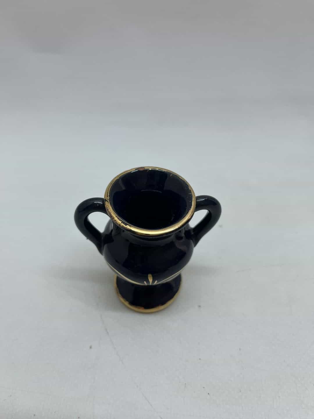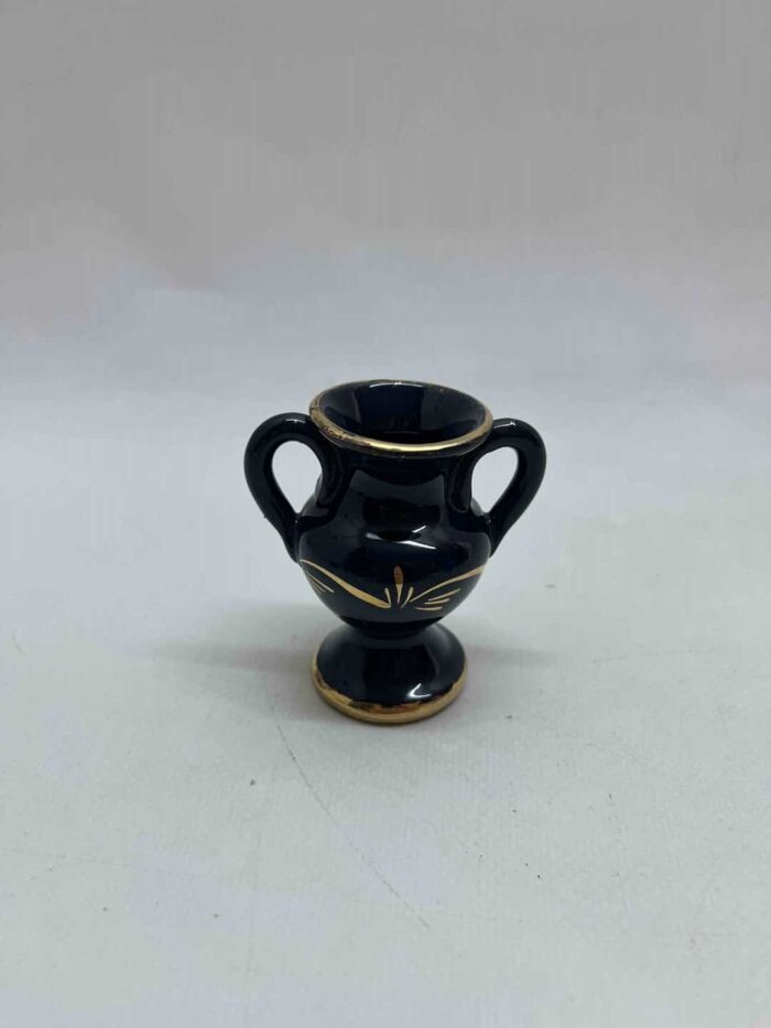Vintage μίνι χειροποίητη διακοσμητική κεραμική στάμνα, με χρυσές λεπτομέρειες 7x6x3