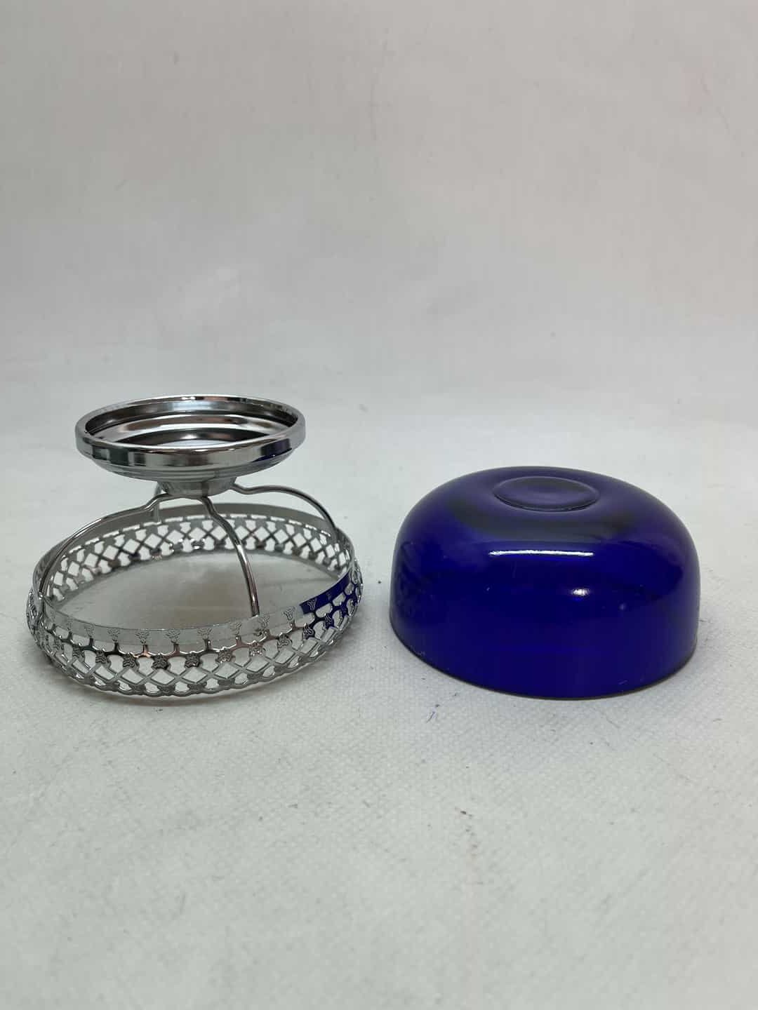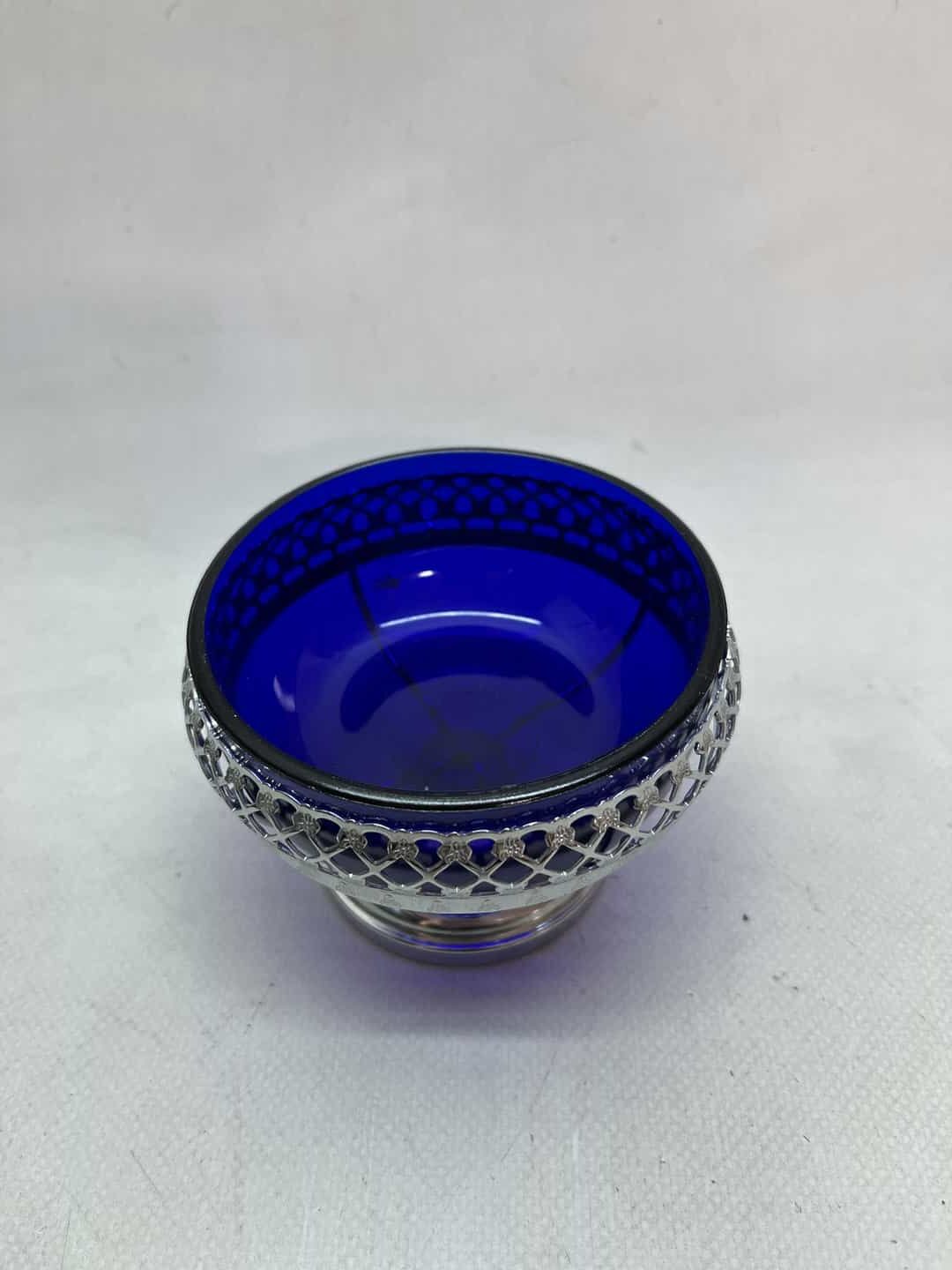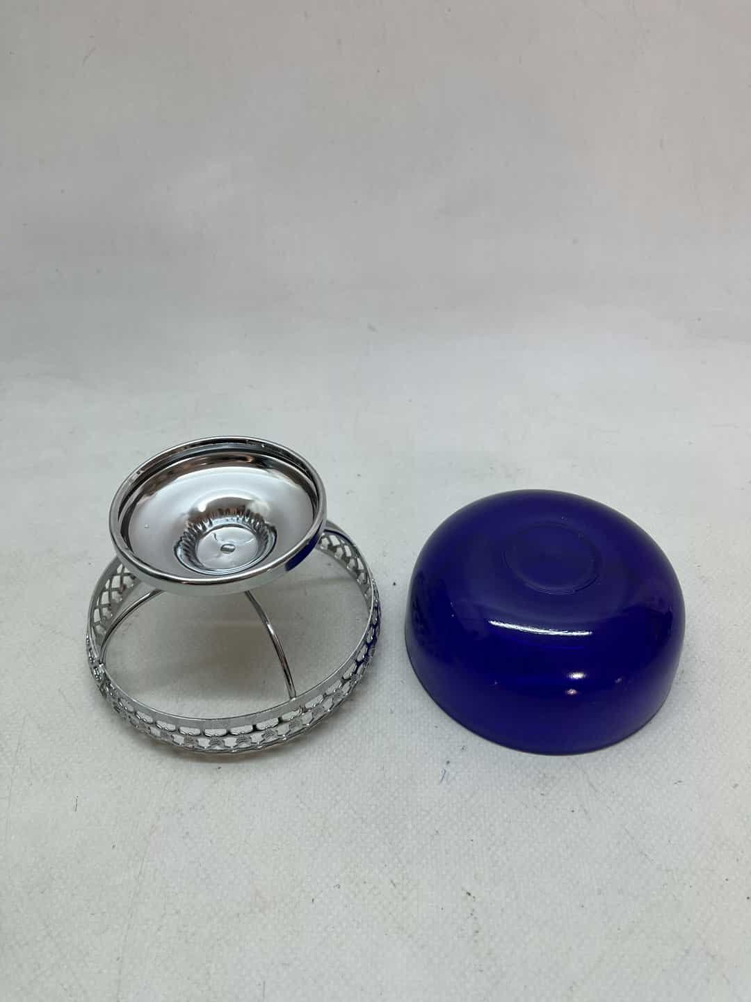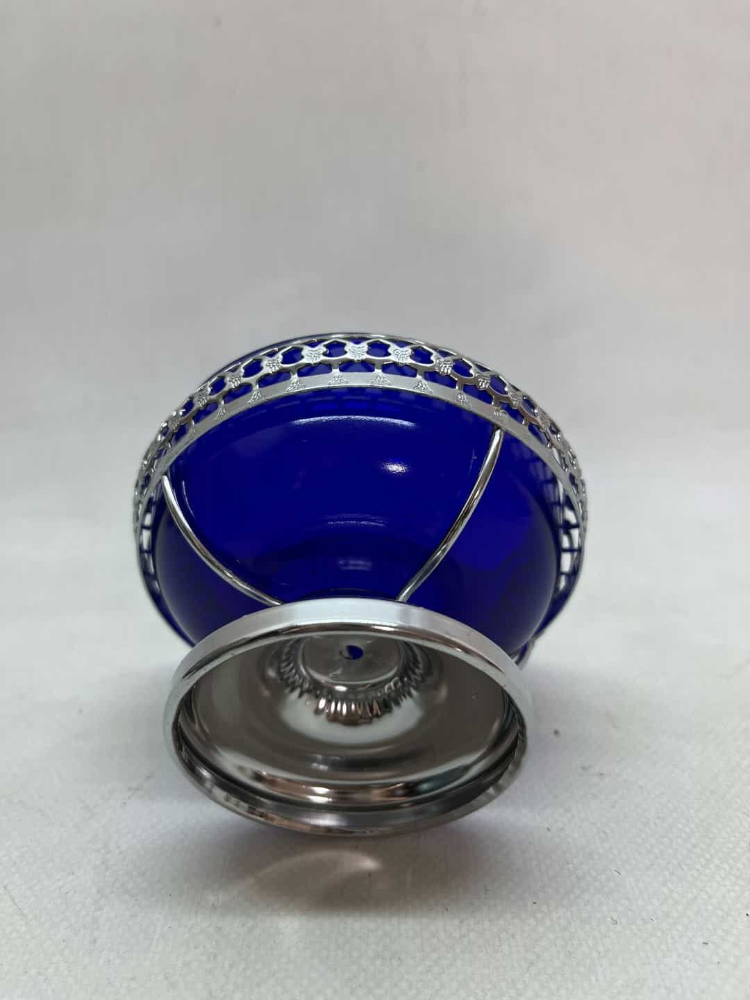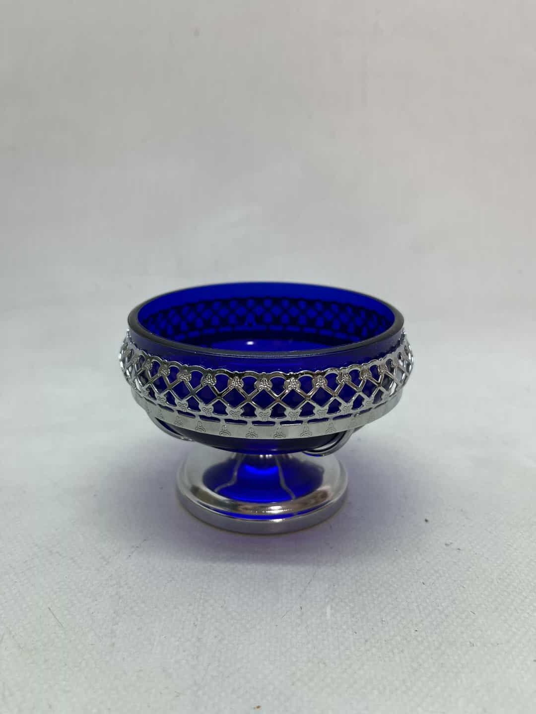 Vintage μπλε μπολ σερβιρίσματος με μεταλλική βάση 7×10 Κωδικός προϊόντος: #s8557