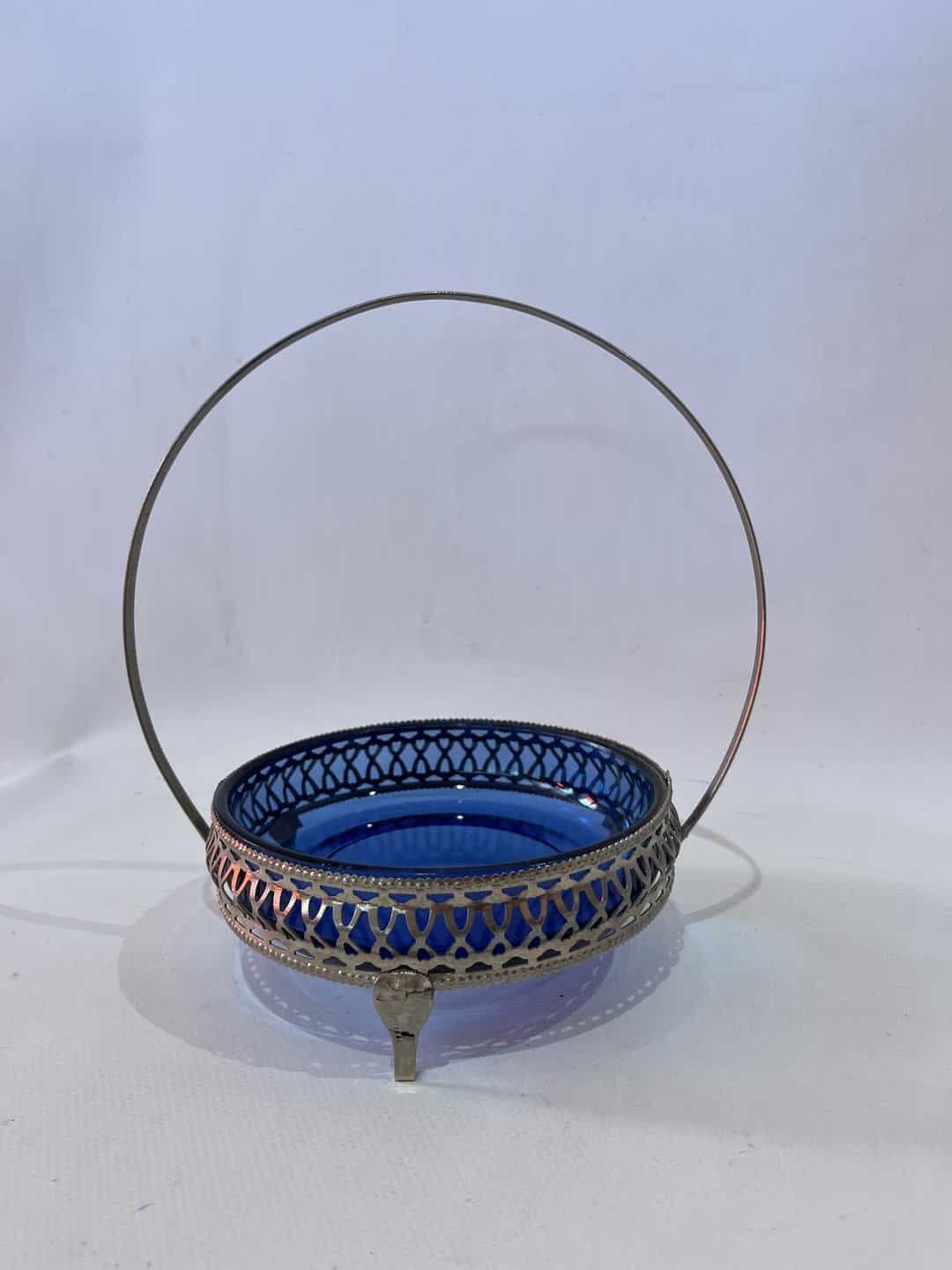 Vintage μπολ από κοβάλτιο μπλε γυαλί με λαβή 21x13x19 Κωδικός προϊόντος: #s14312