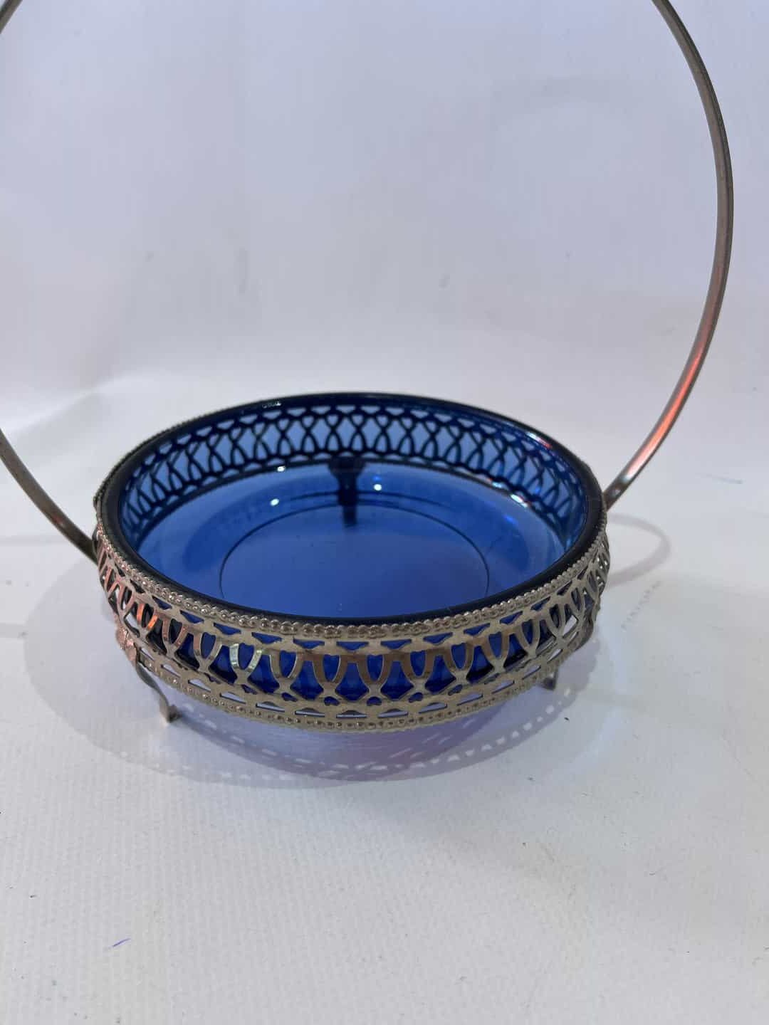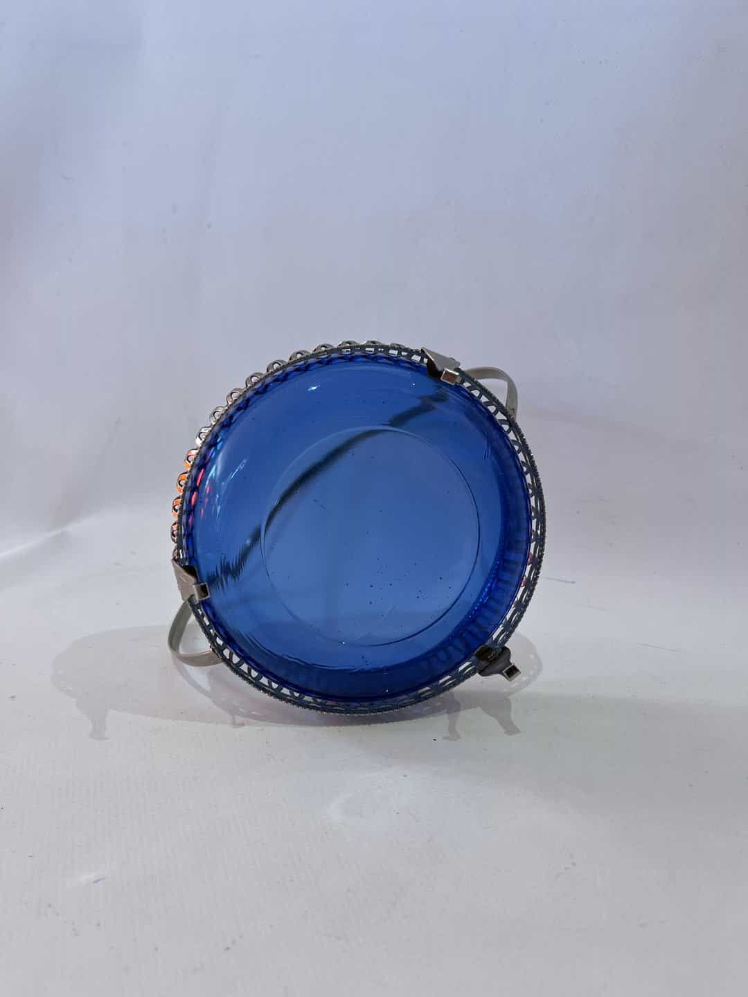 Vintage μπολ από κοβάλτιο μπλε γυαλί με λαβή 21x13x19