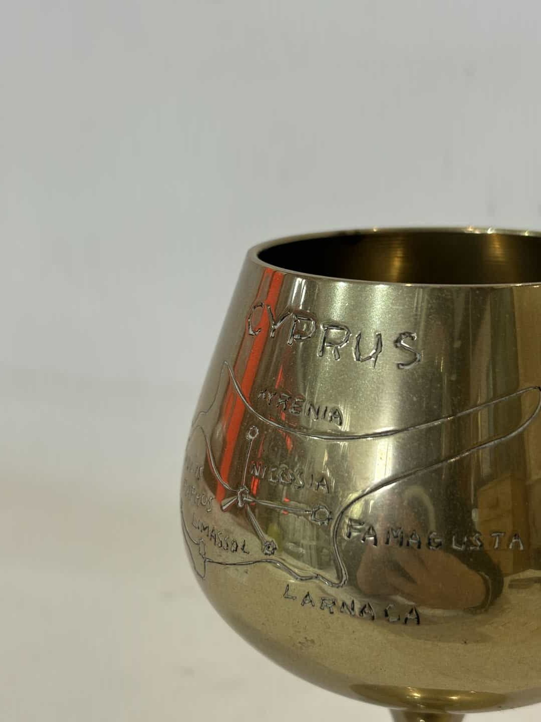 Vintage μπρούτζινο κρασοπότηρο αναμνηστικό από την Κύπρο 15×7