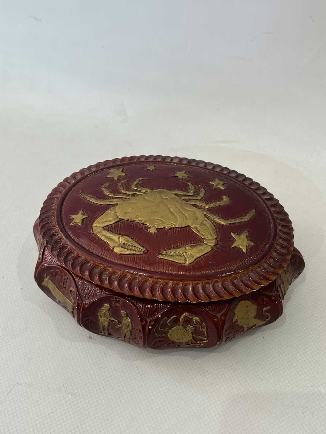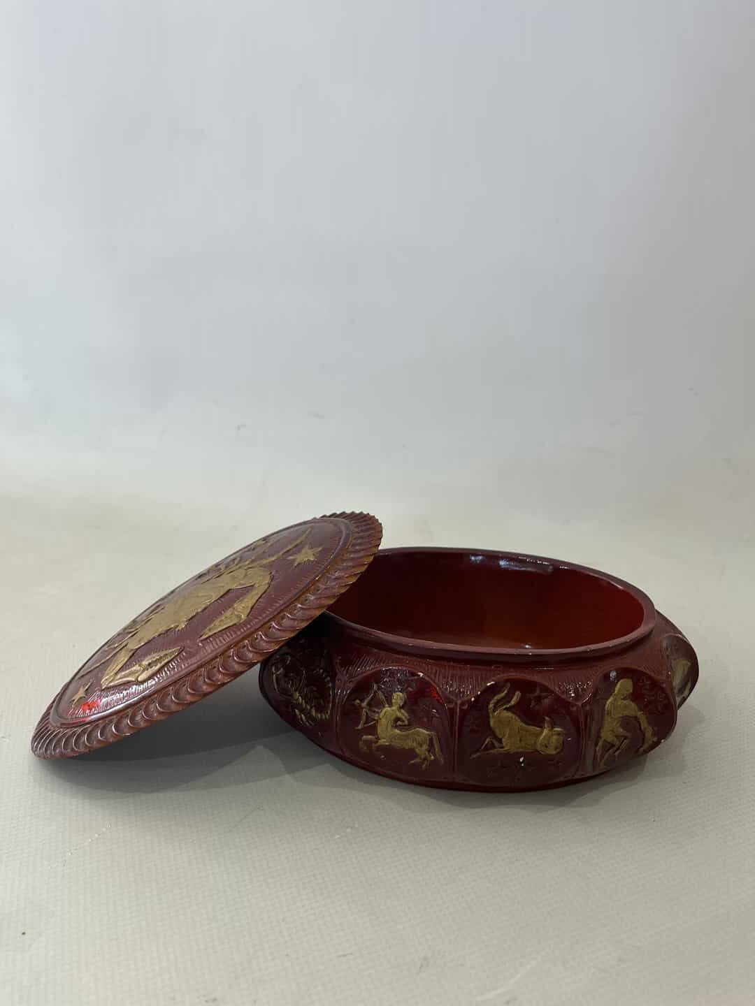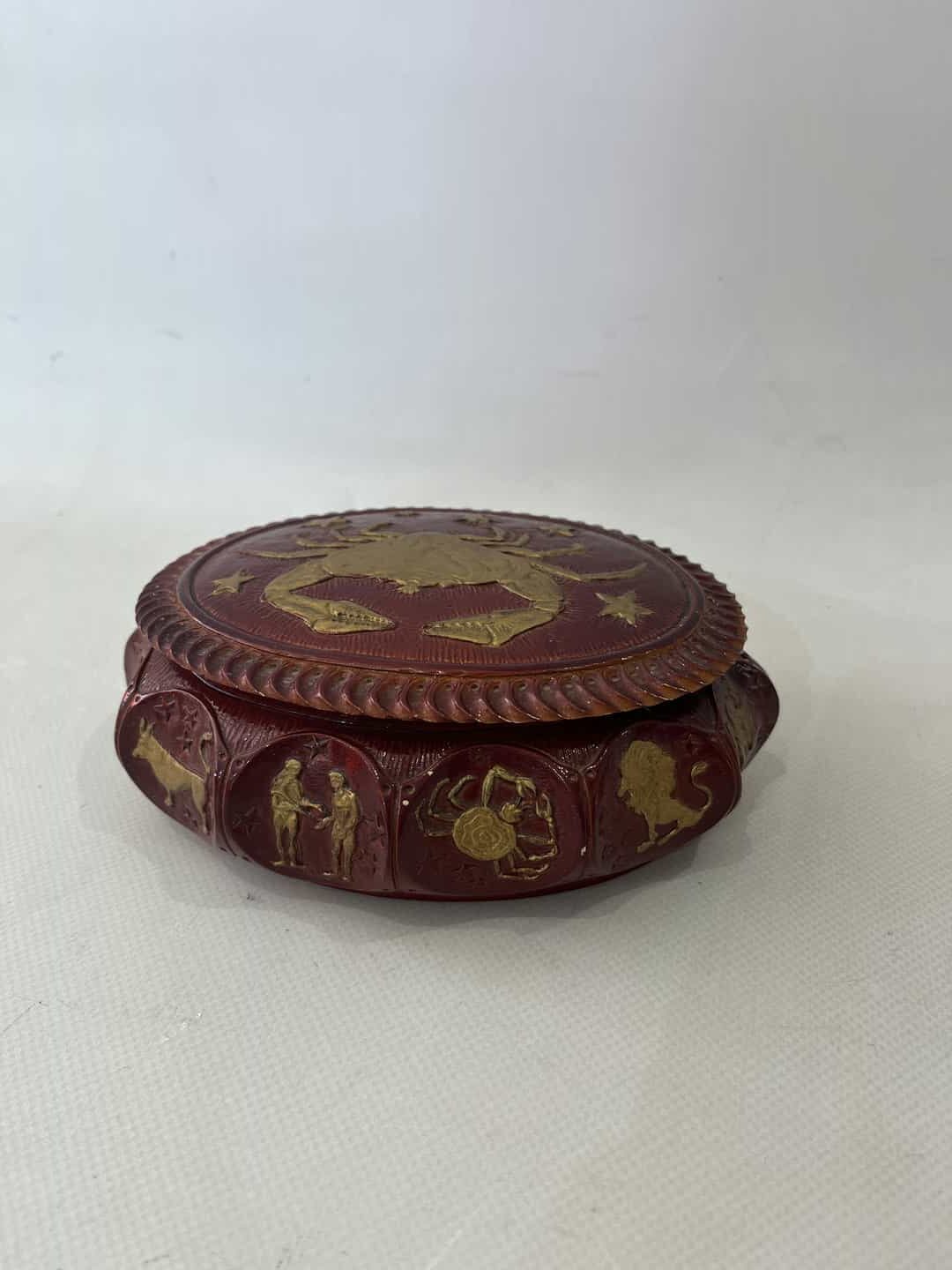 Vintage ξύλινη μπιζουτιέρα με σχέδια ζωδίων 6x17x13cm